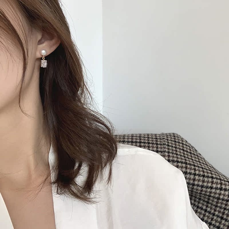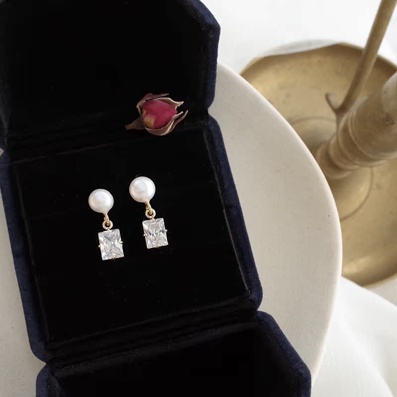 【迷度】S925銀針天然淡水珍珠耳釘超閃鋯鉆耳環女冬季新款耳飾1入