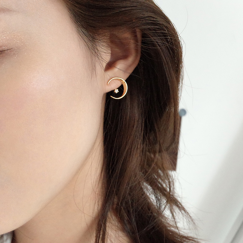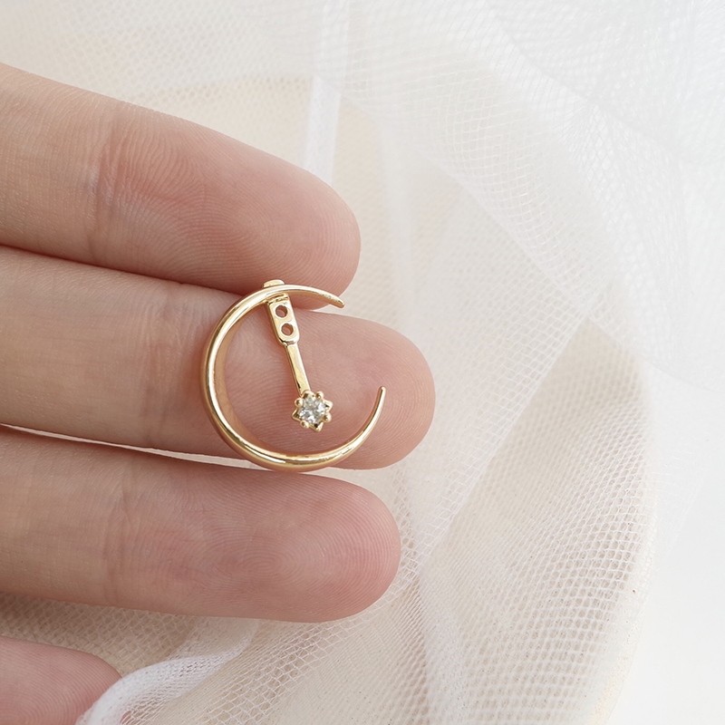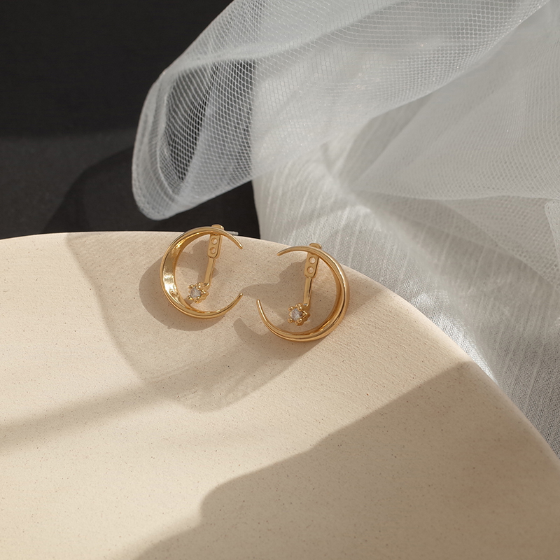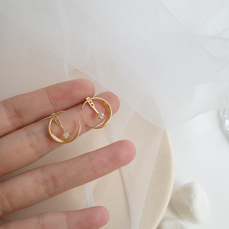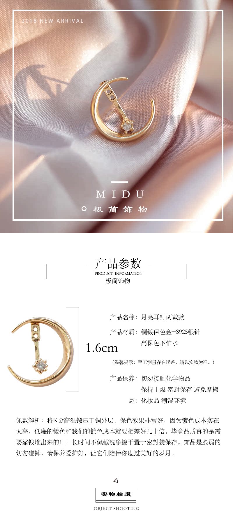 【迷度】S925銀針月亮鋯石耳釘可拆卸耳釘 簡約耳環 設計感耳環1入
