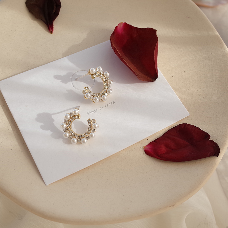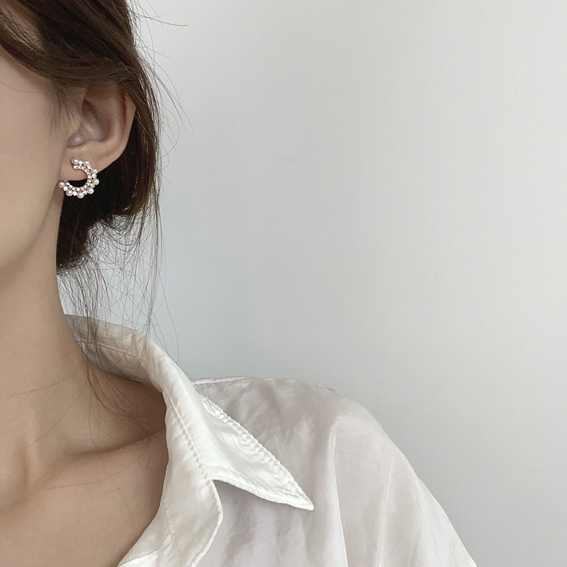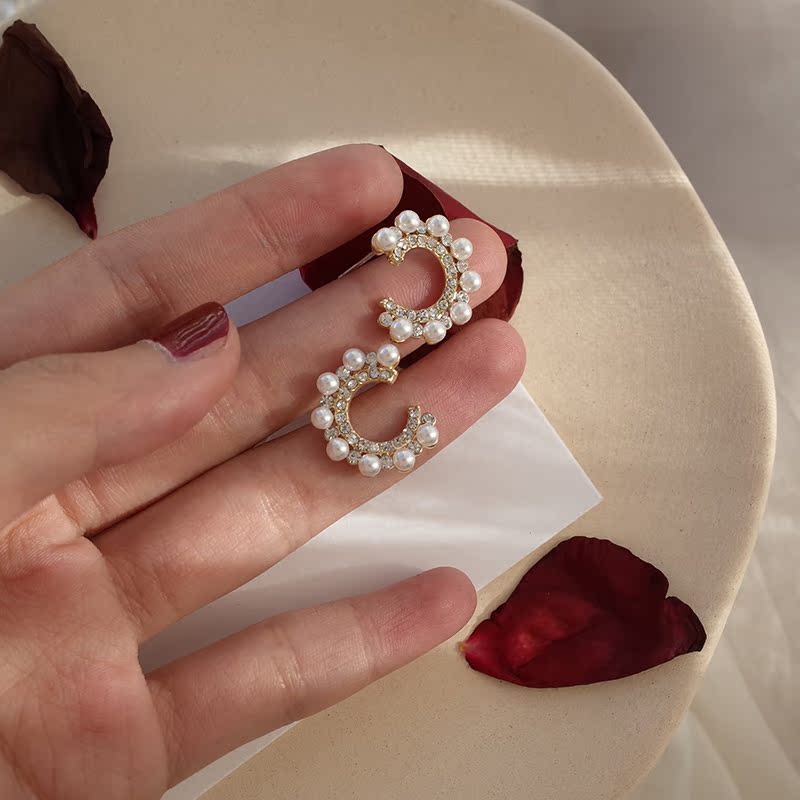 【迷度】S925銀針ins超閃鋯鉆圓圈耳釘珍珠氣質百搭珍珠耳環女1入
