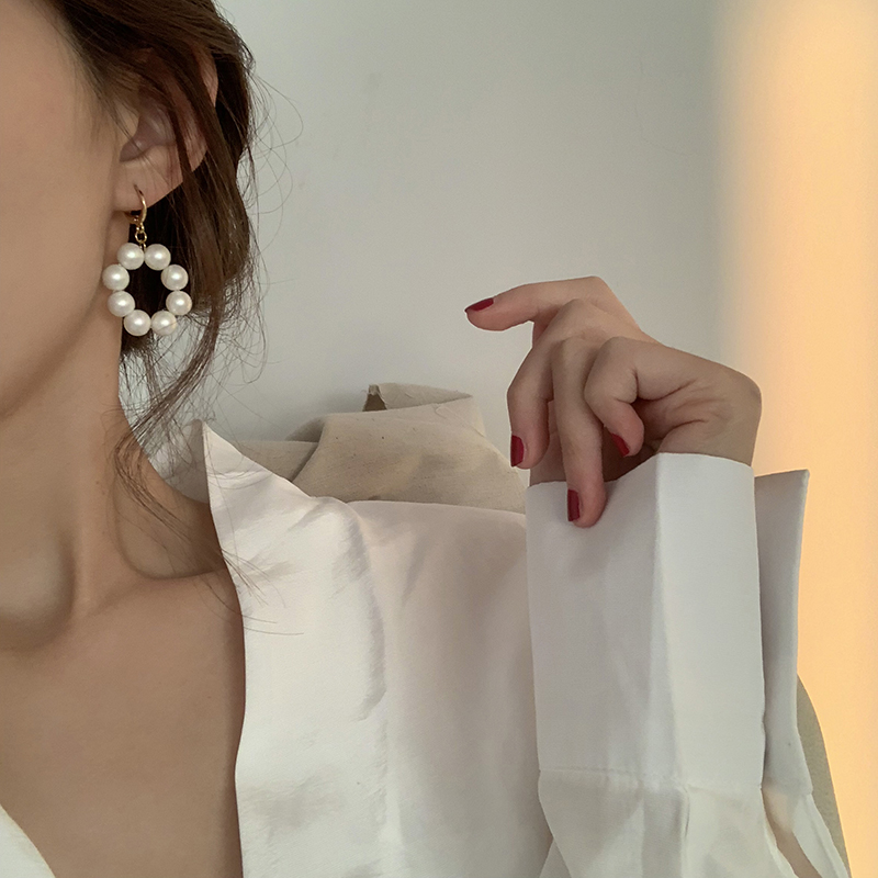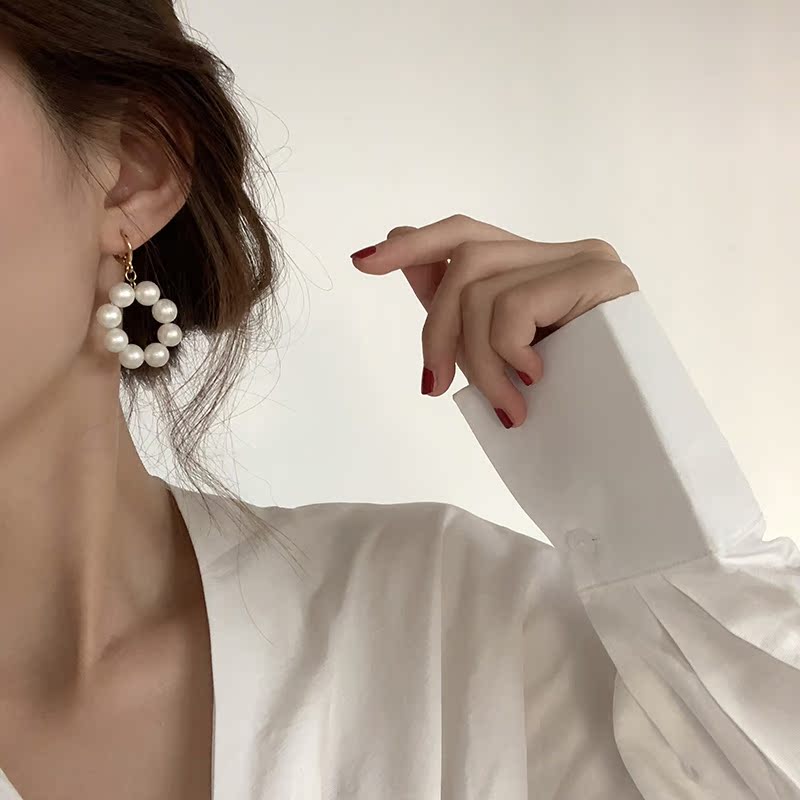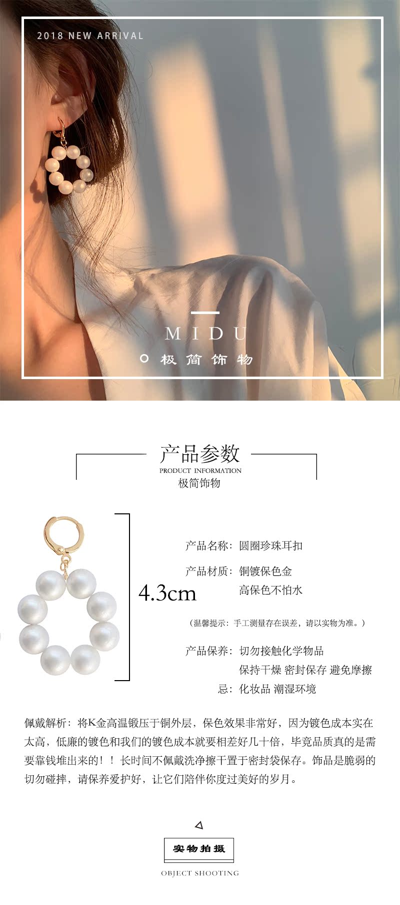 【迷度】氣質夸張珍珠耳環百搭圓圈耳扣女耳夾溫柔 珍珠耳環女1入