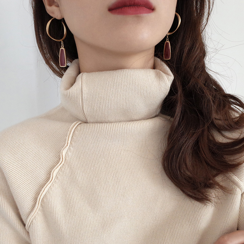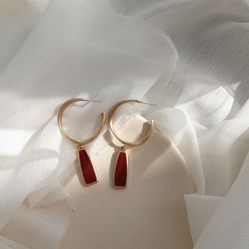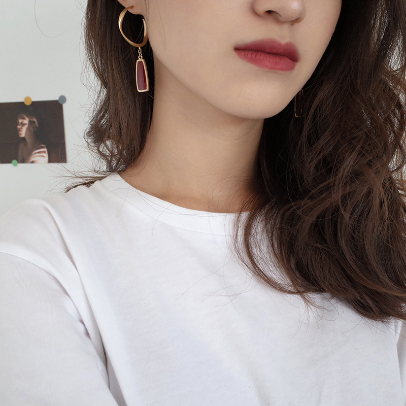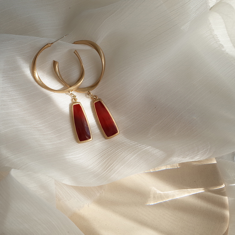 【迷度】S925銀針秋冬復古酒紅色耳圈夸張耳飾 女耳環2018新款潮1入