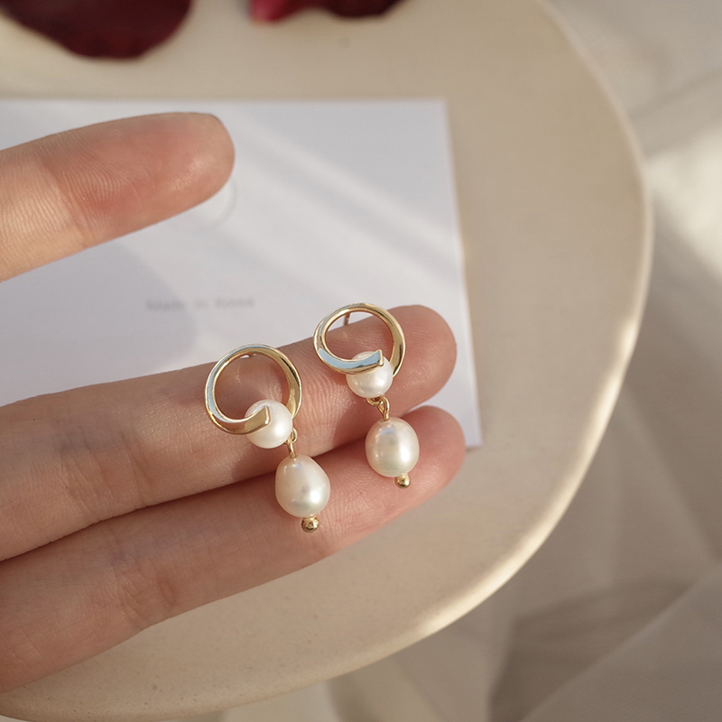 【迷度】S925銀針ins小巧天然珍珠耳釘耳環氣質 設計感耳釘 小眾1入