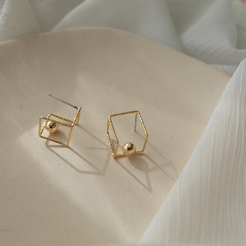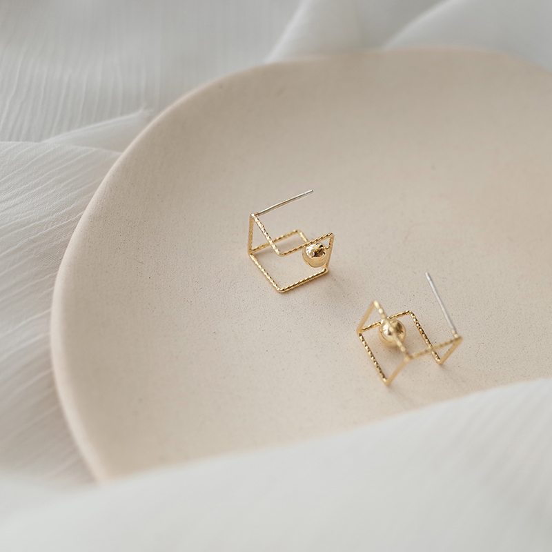 【迷度】S925銀針簡約百搭立方體耳釘 個性耳環女設計感耳釘 小眾1入