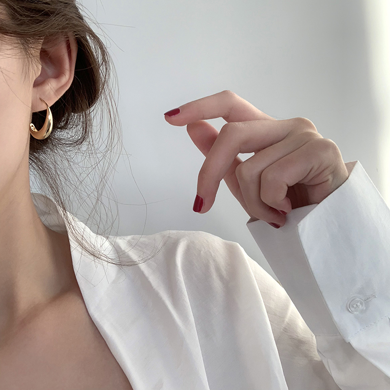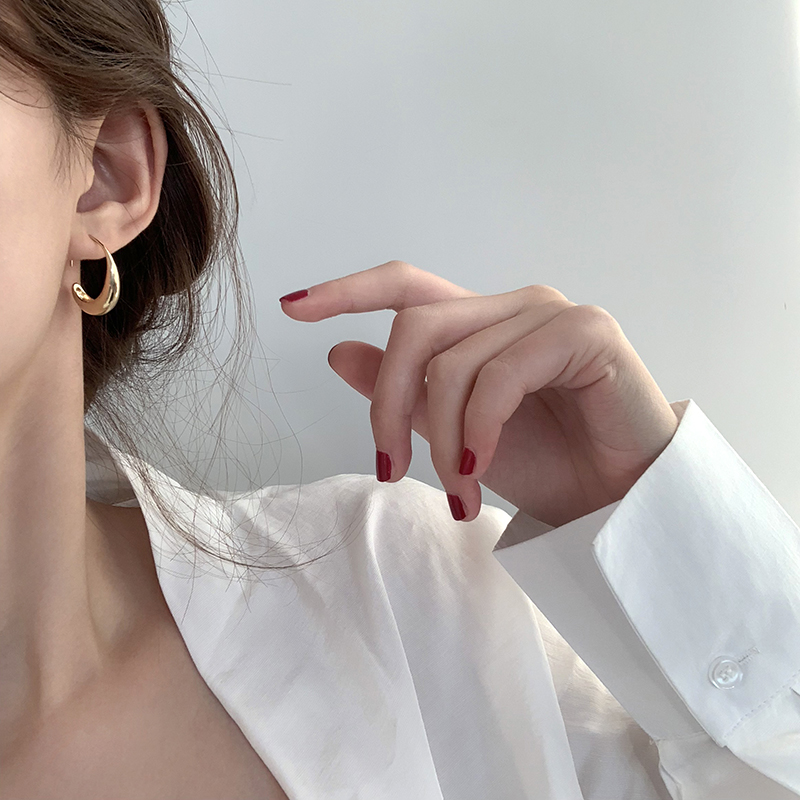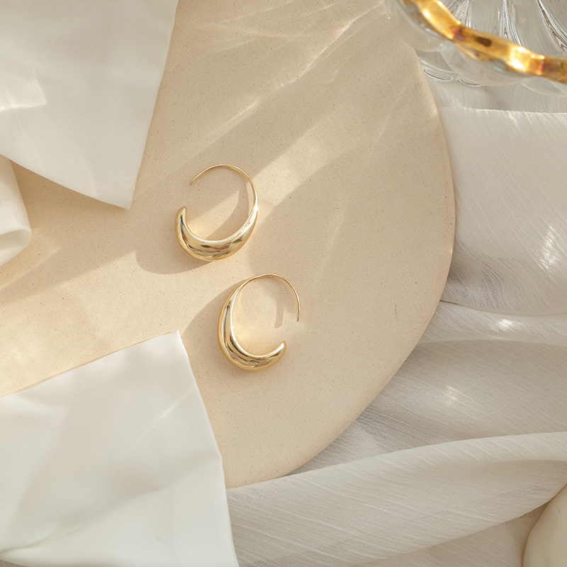【迷度】14K包金光面水滴耳圈韓國個性百搭精致耳環冷淡風耳飾1入