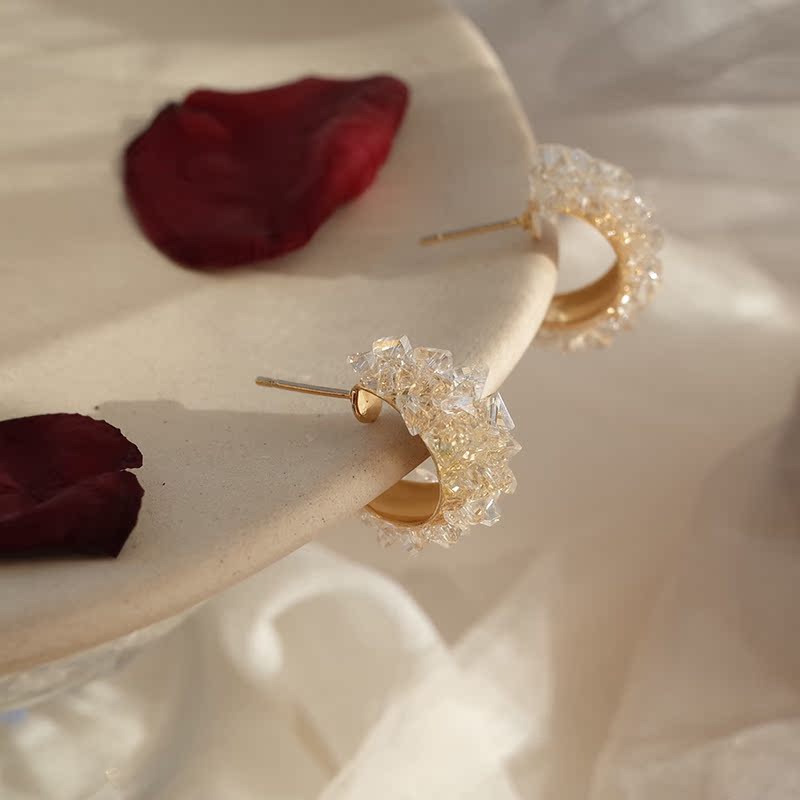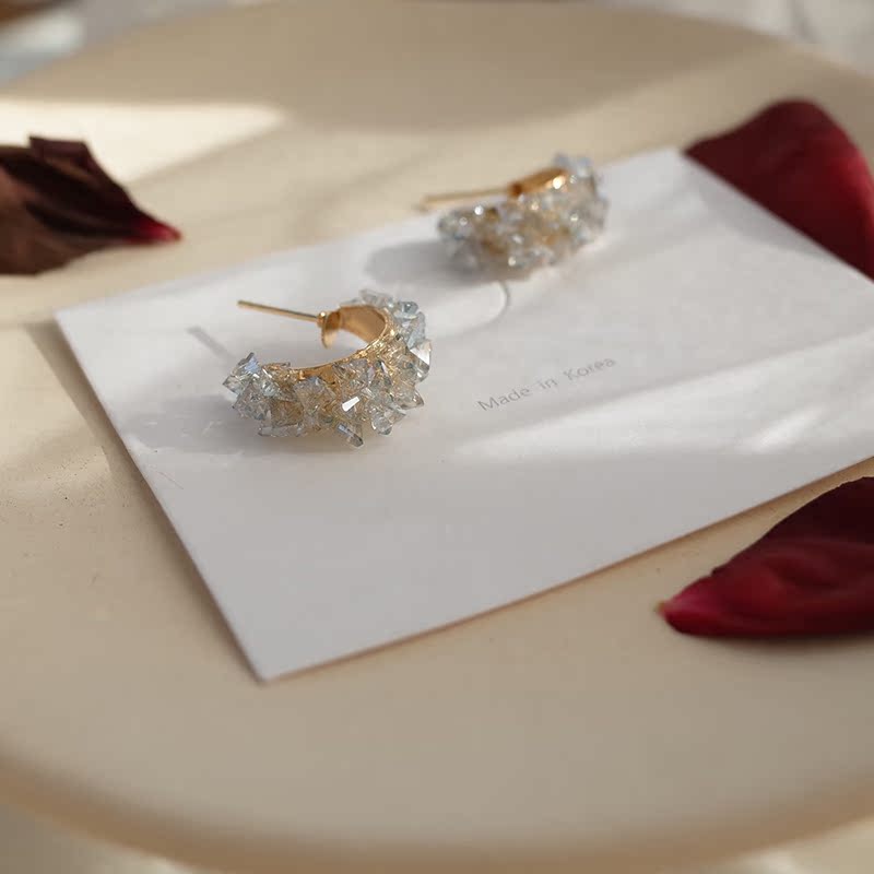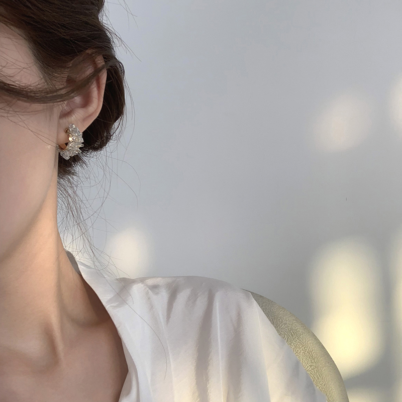 【迷度】S925銀針chic超閃鋯鉆耳圈韓國氣質耳環 女 設計感耳環1入