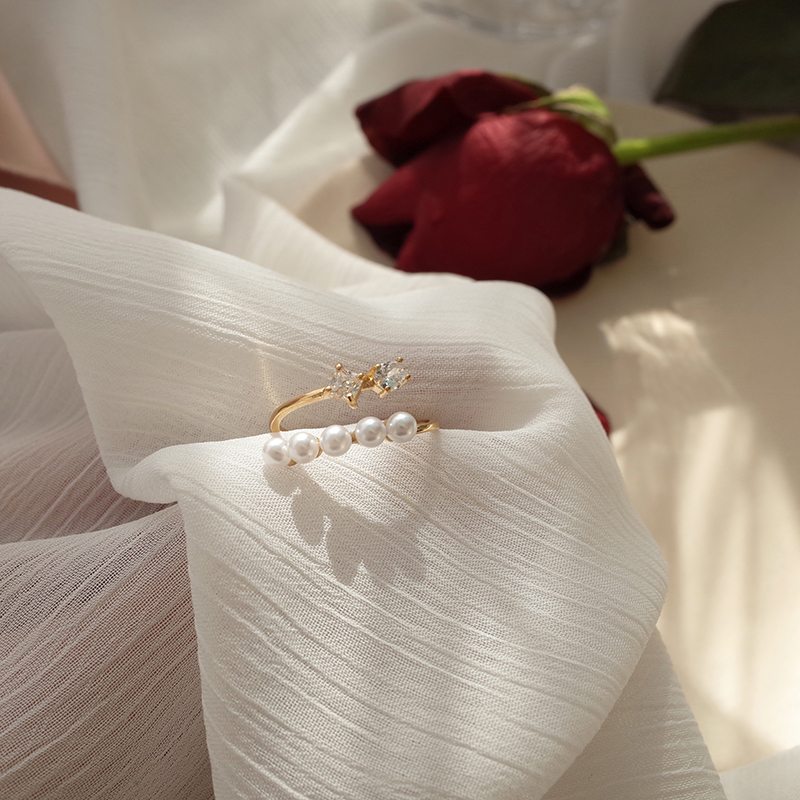 【迷度】鋯鉆珍珠開口戒指指環 女韓國簡約食指戒chic戒指 極簡1入