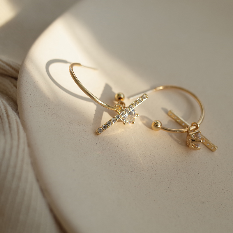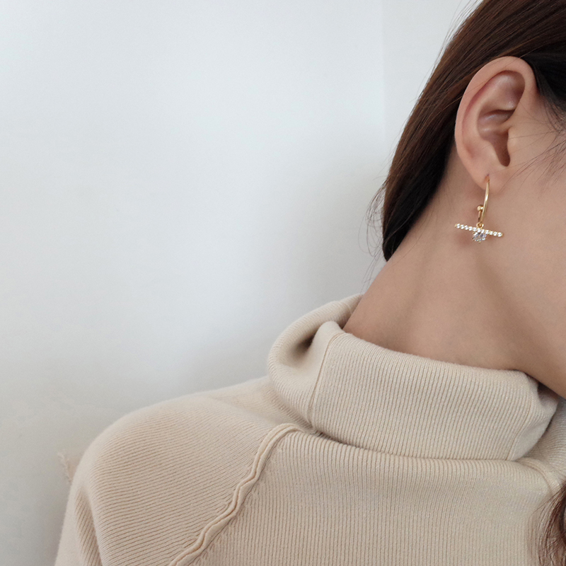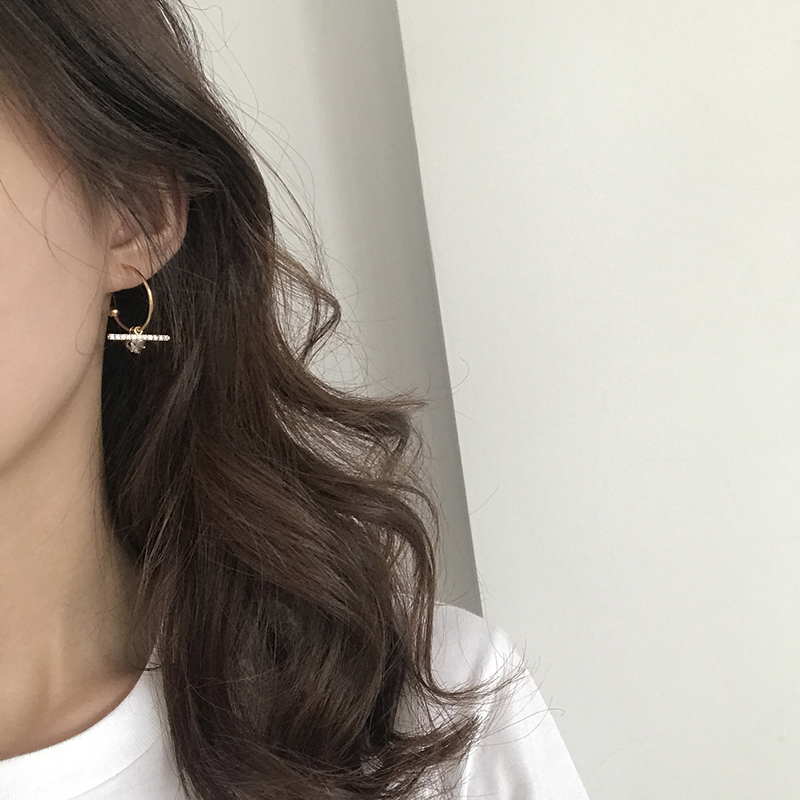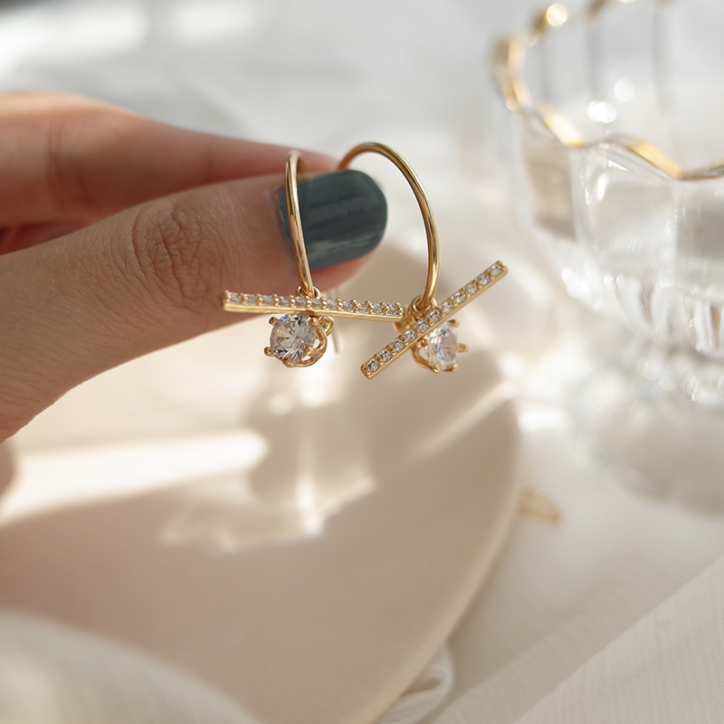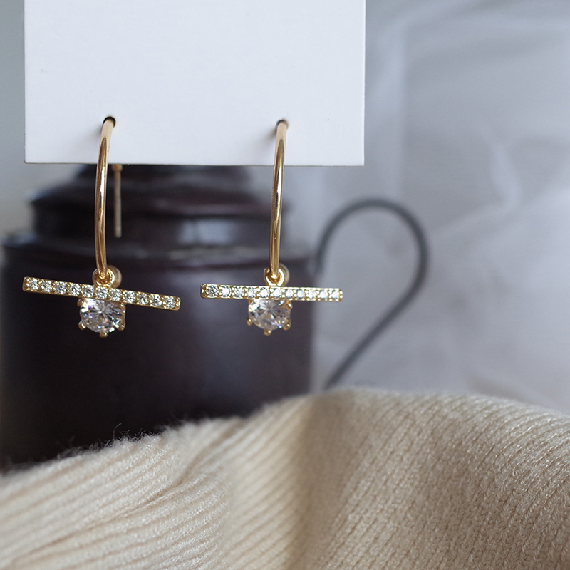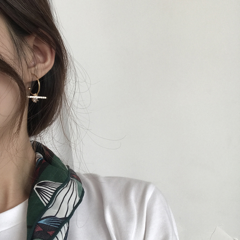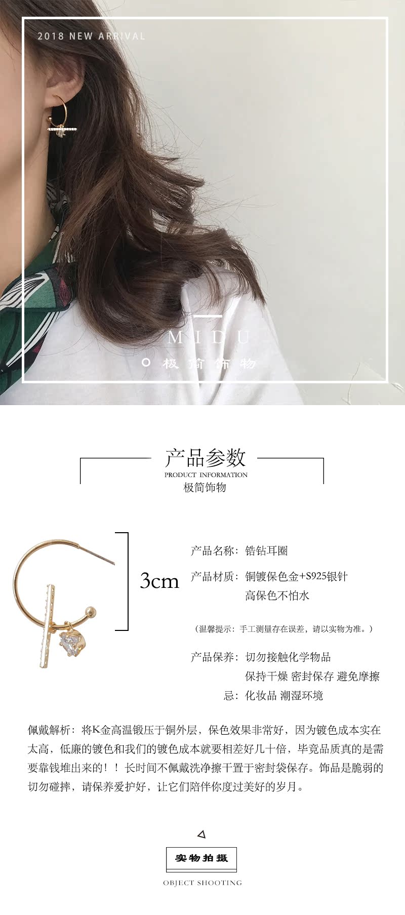 【迷度】S925銀針圓圈水鉆女 超閃耳釘氣質耳圈 設計感耳環 小眾1入
