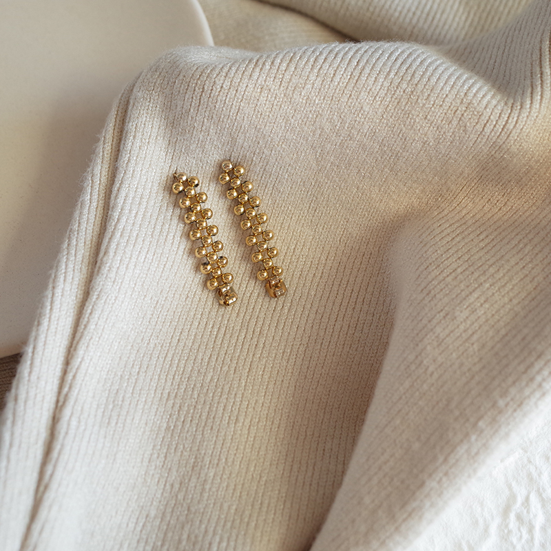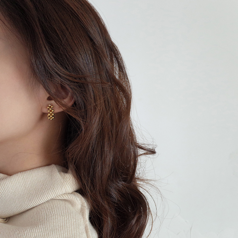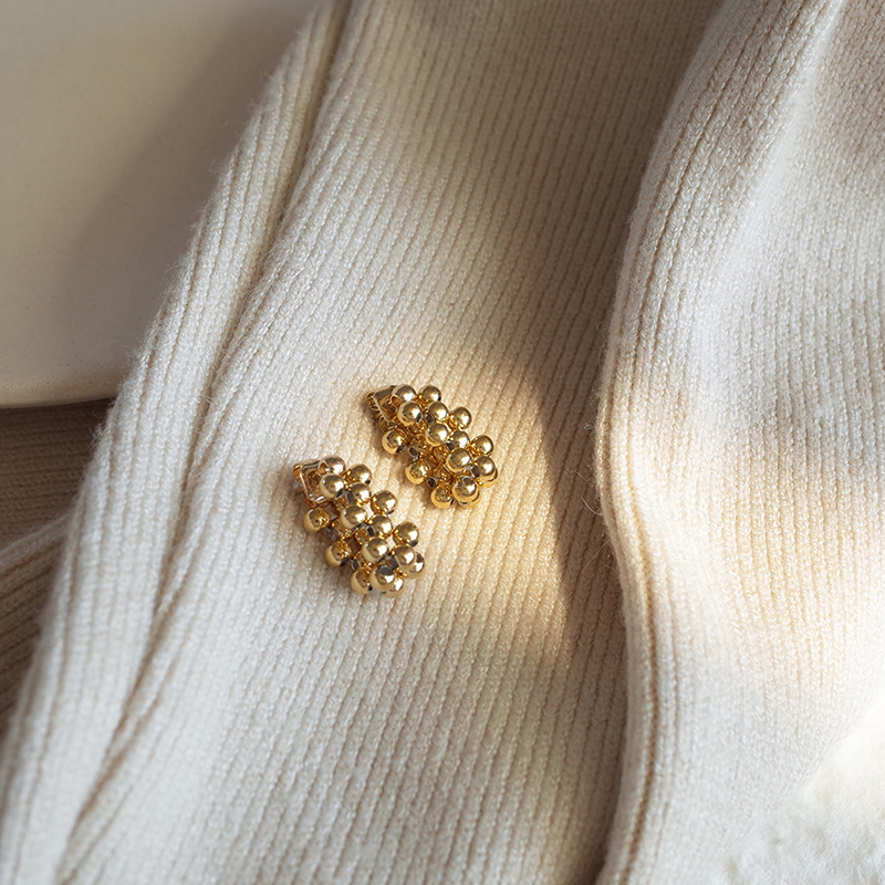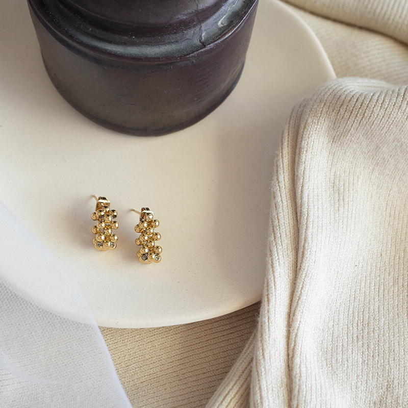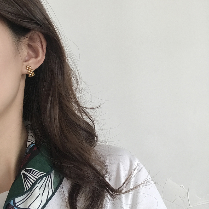 【迷度】14K包金時髦金珠耳環豆豆耳釘百搭女耳環女新款2018 網紅1入
