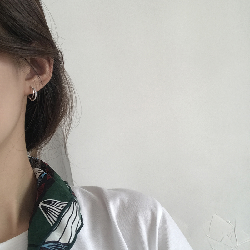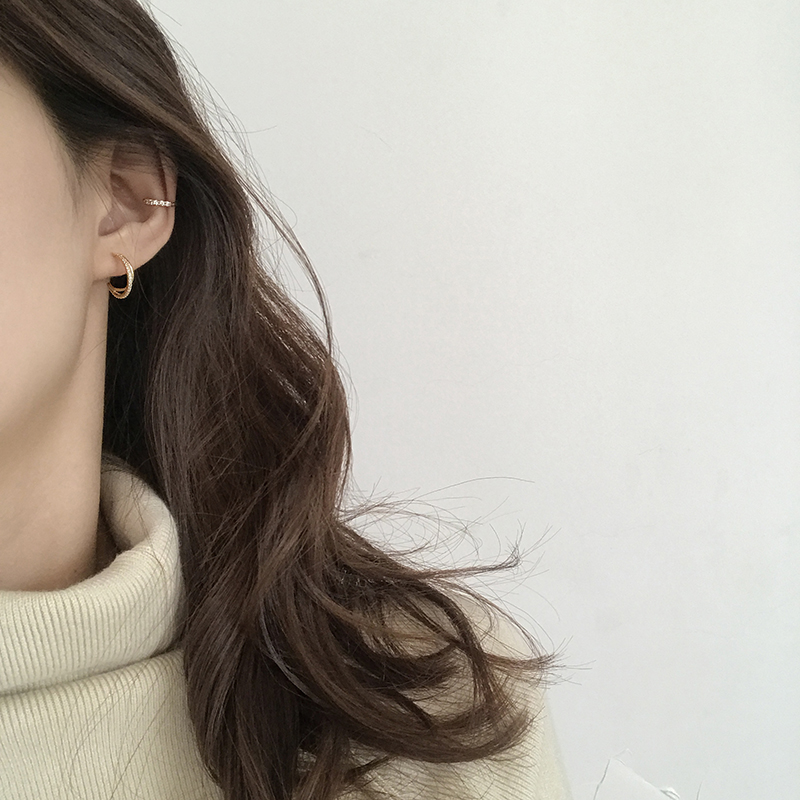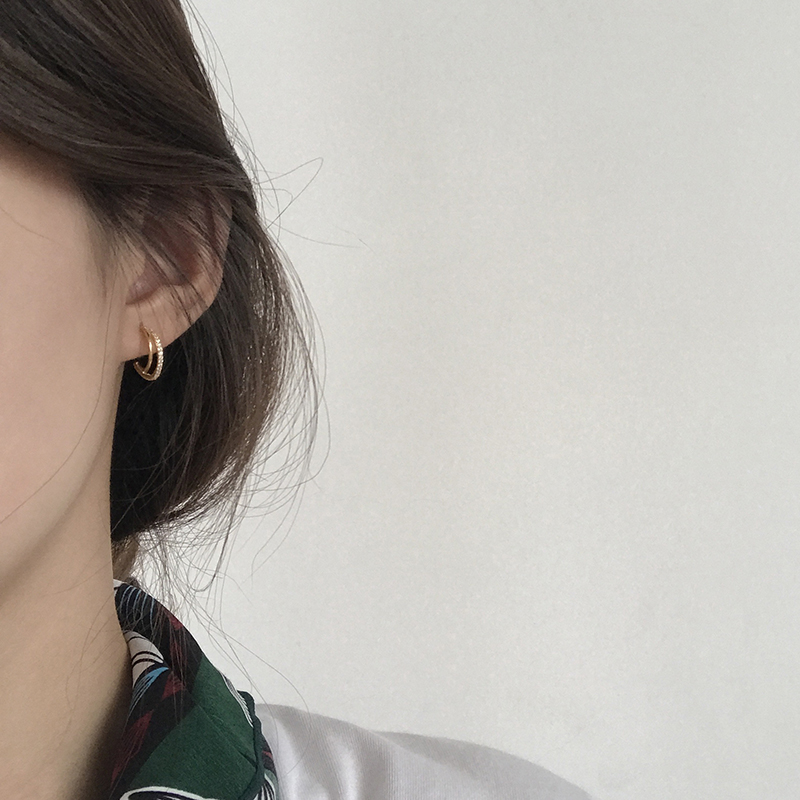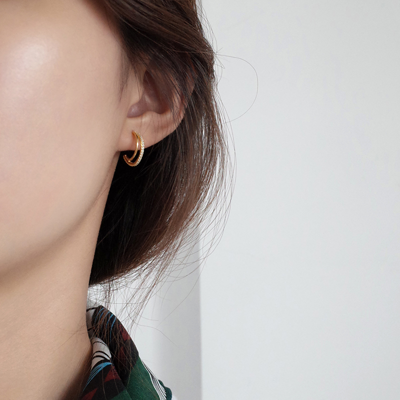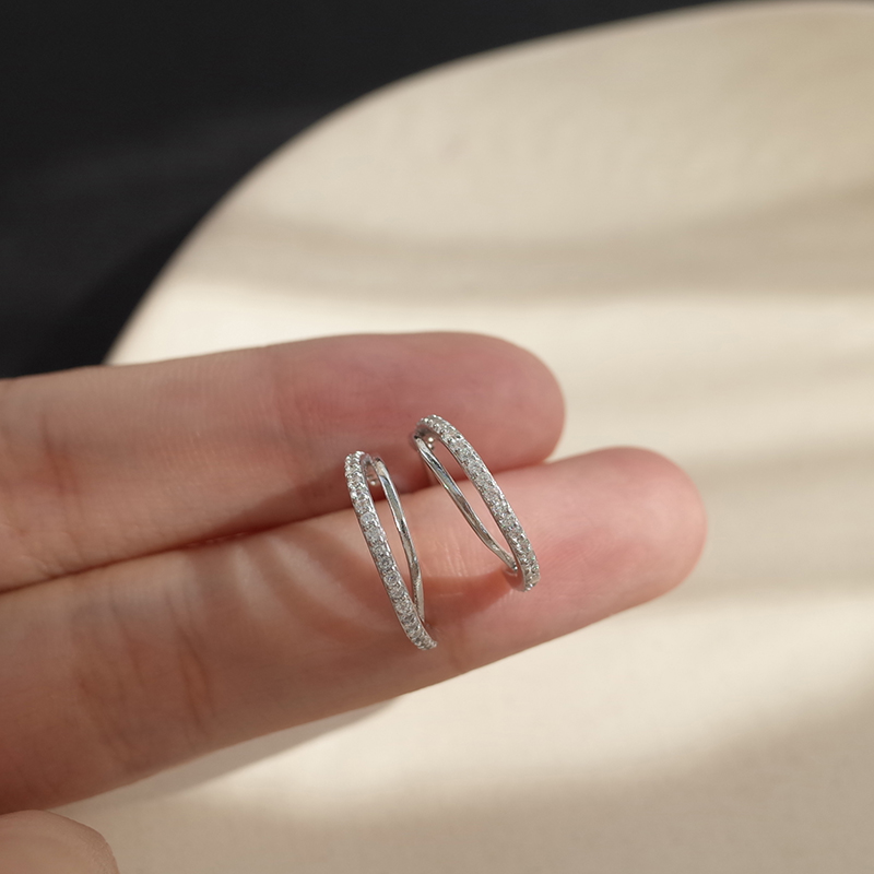 【迷度】通體925純銀氣質半圓鋯鉆耳圈百搭耳環 港風設計感耳環1入