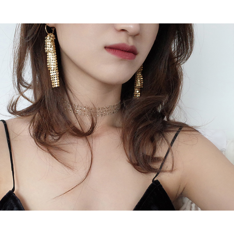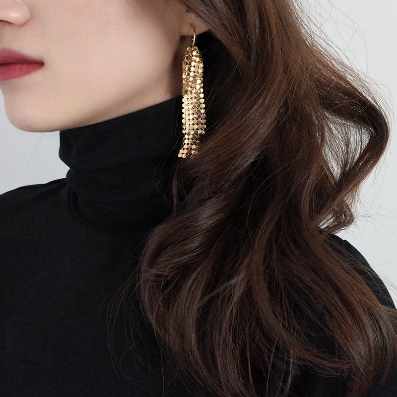【迷度】S925銀針氣質耳圈 夸張長款蹦迪耳環女適合圓臉的耳環1入