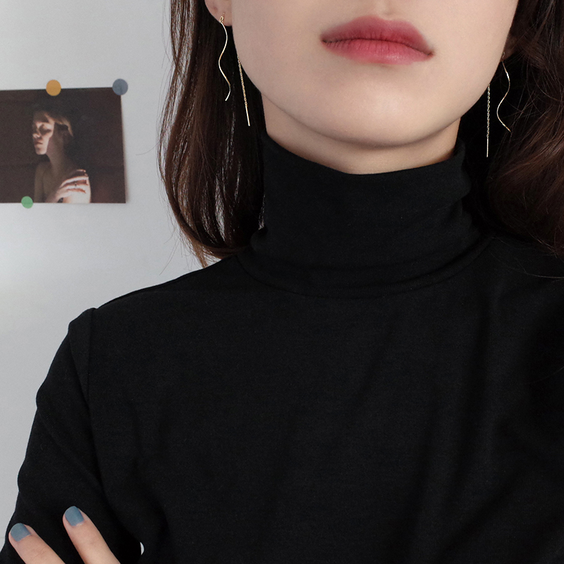 【迷度】通體925純銀簡約長款波浪耳線 百搭氣質耳環女新款20181入