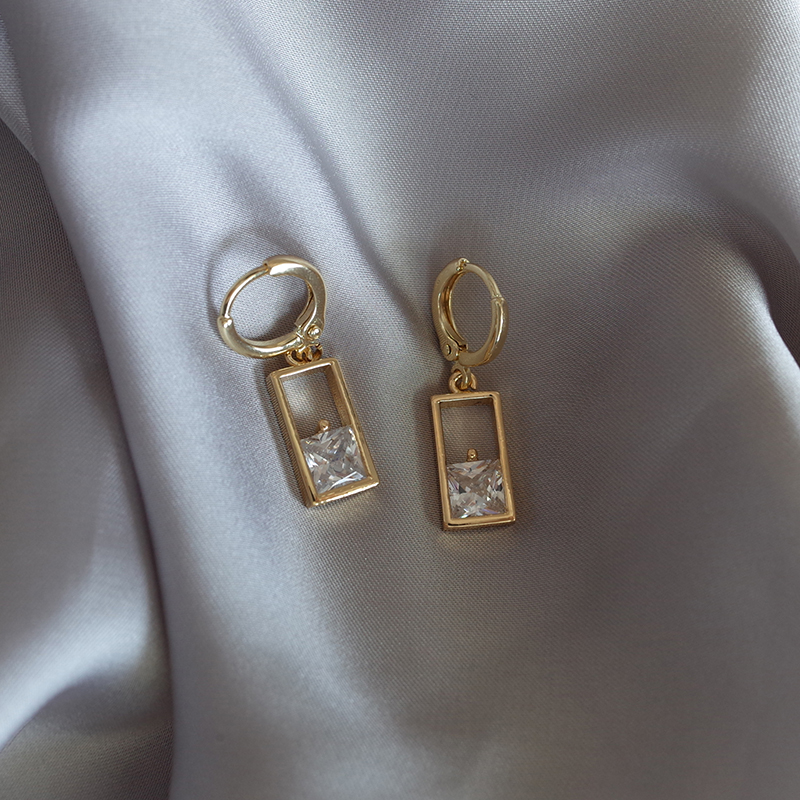 【迷度】韓國簡約方形極光鋯石耳扣復古耳圈無耳洞耳夾冷淡風耳環1入