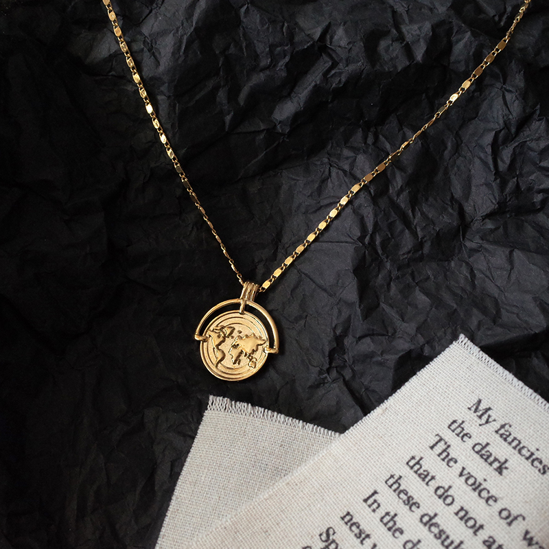 地圖款直徑2.5cm 鏈長48+3+4cm
