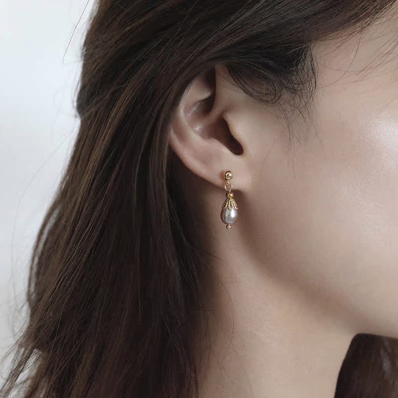 【迷度】S925銀針宮廷風天然淡水珍珠耳釘mini氣質復古耳環 溫柔1入