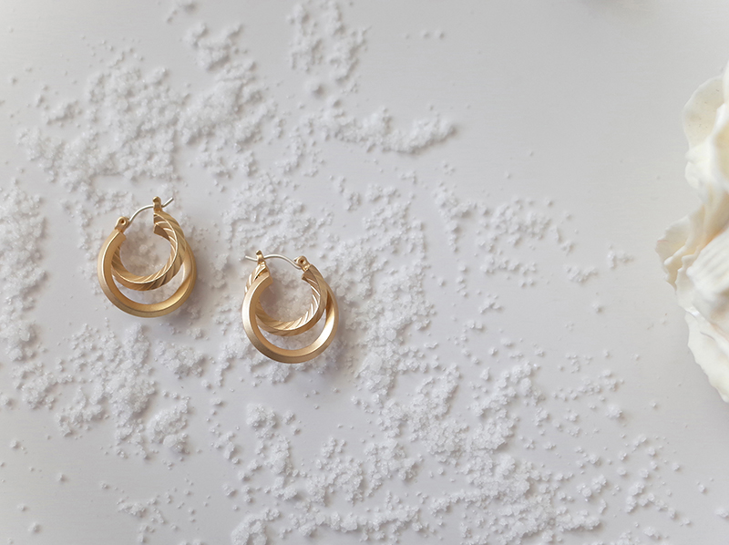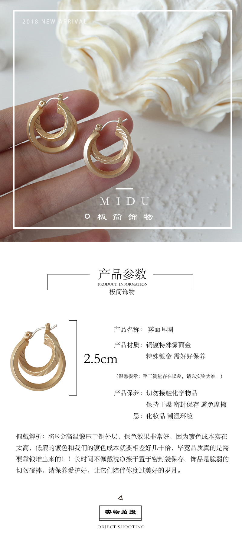 【迷度】S925銀針霧面雙圈耳環韓國個性耳圈 冷淡風蹦迪耳環 網紅1入