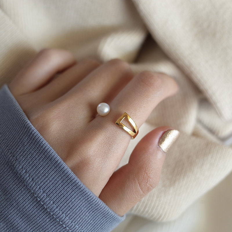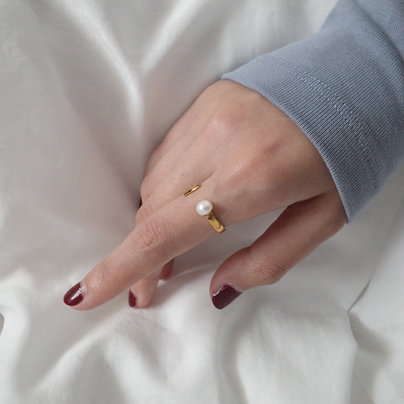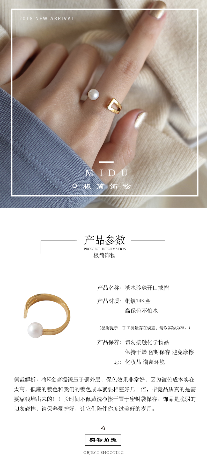 【迷度】14K包金淡水珍珠指環韓國簡約氣質開口戒指女食指戒 網紅1入