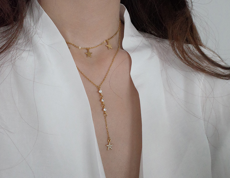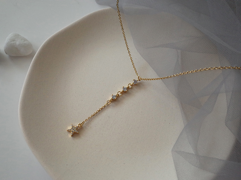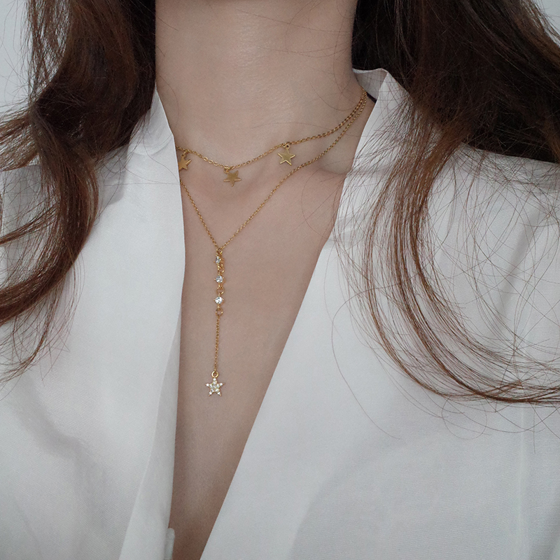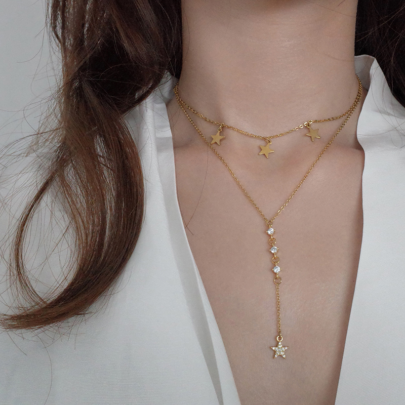 【迷度】14K包金時髦星星鎖骨鏈超閃鋯鉆頸鏈 ins項鏈 女冷淡風1入