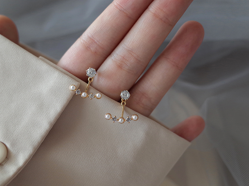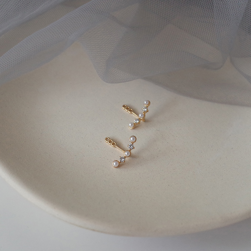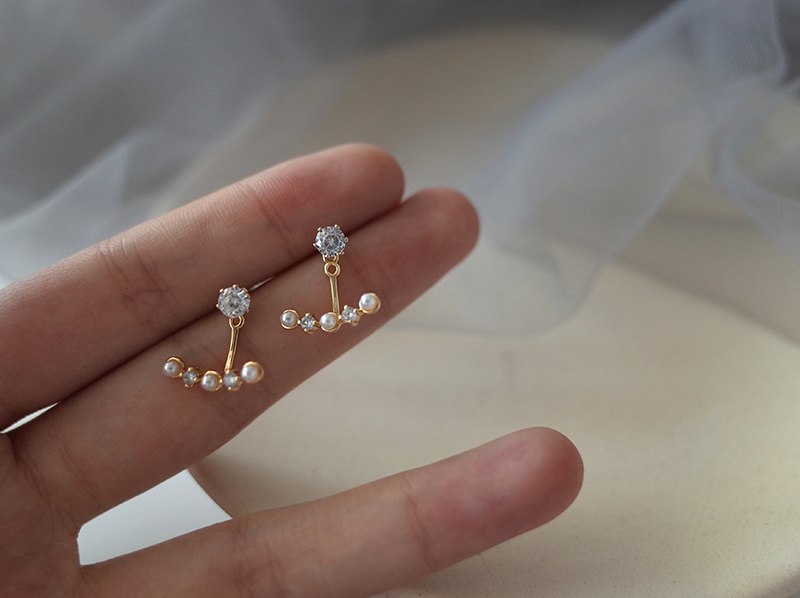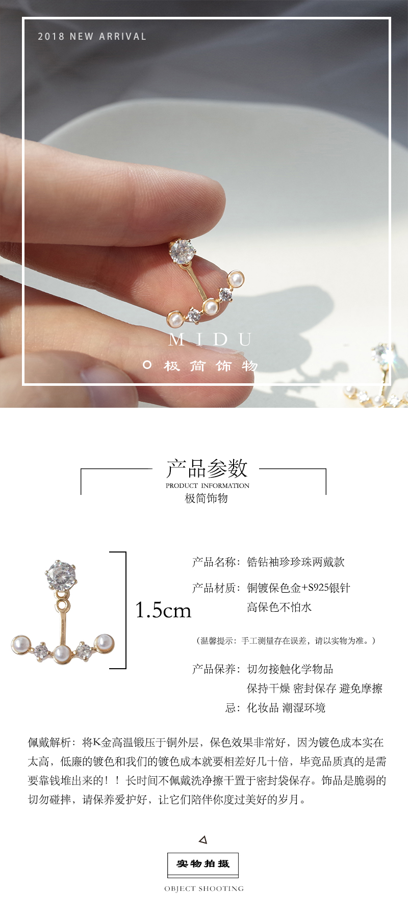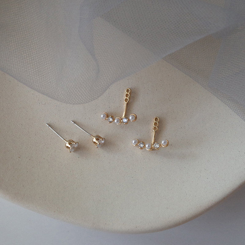 【迷度】S925銀針超閃鋯鉆耳釘mini珍珠耳飾 一款兩戴耳環 精致1入