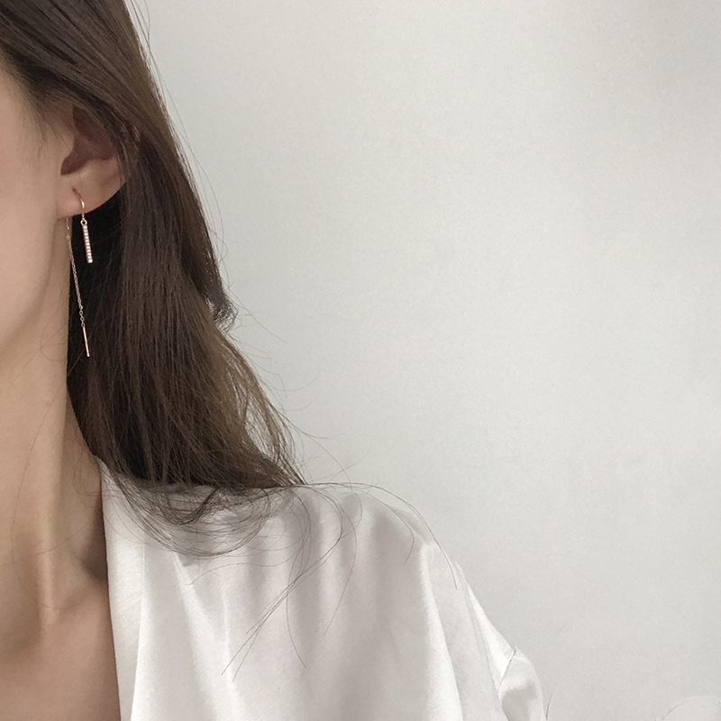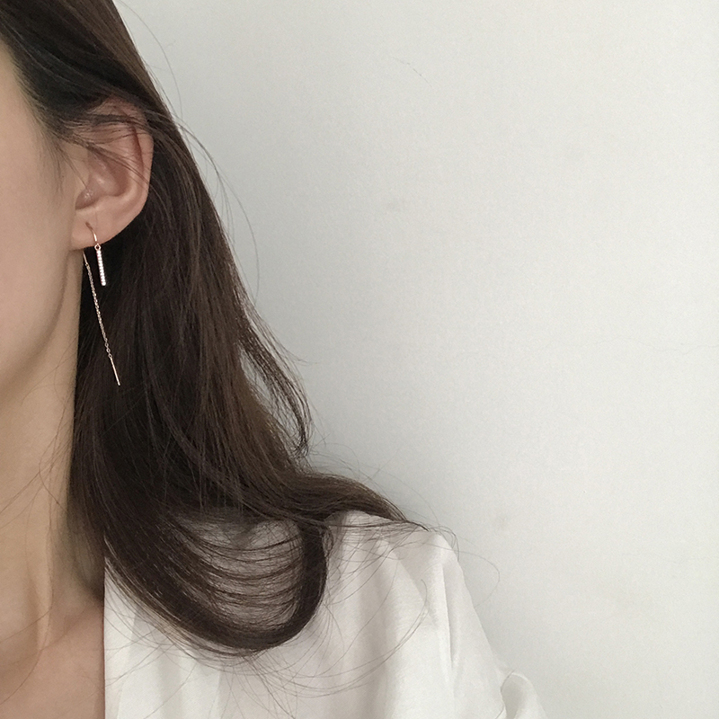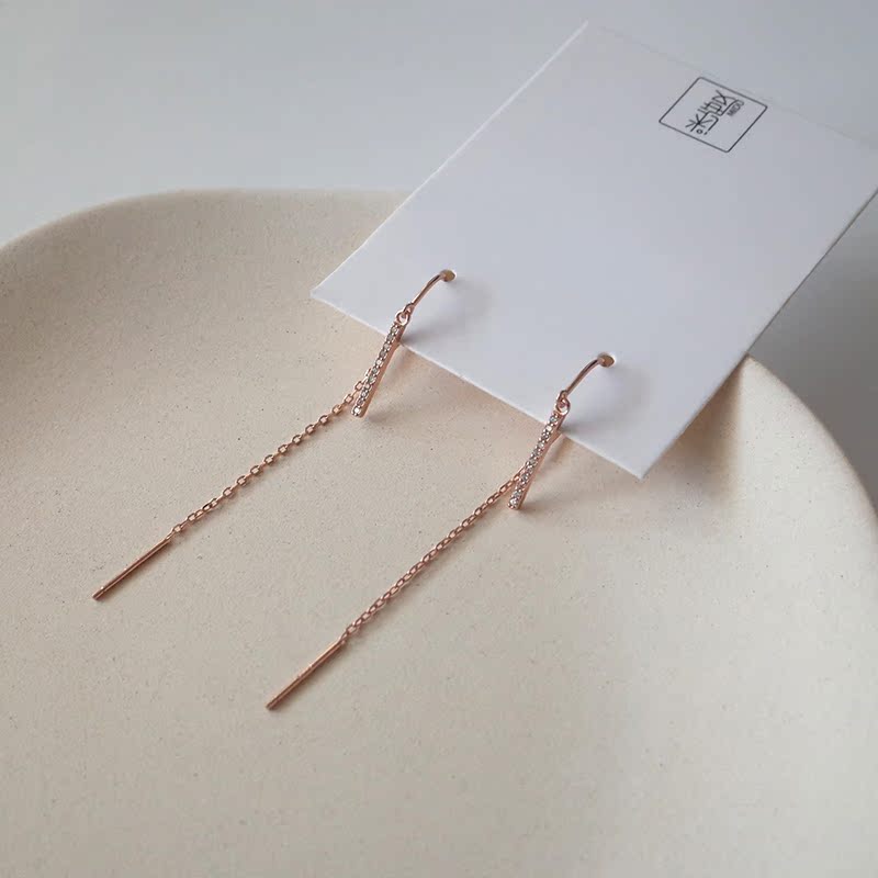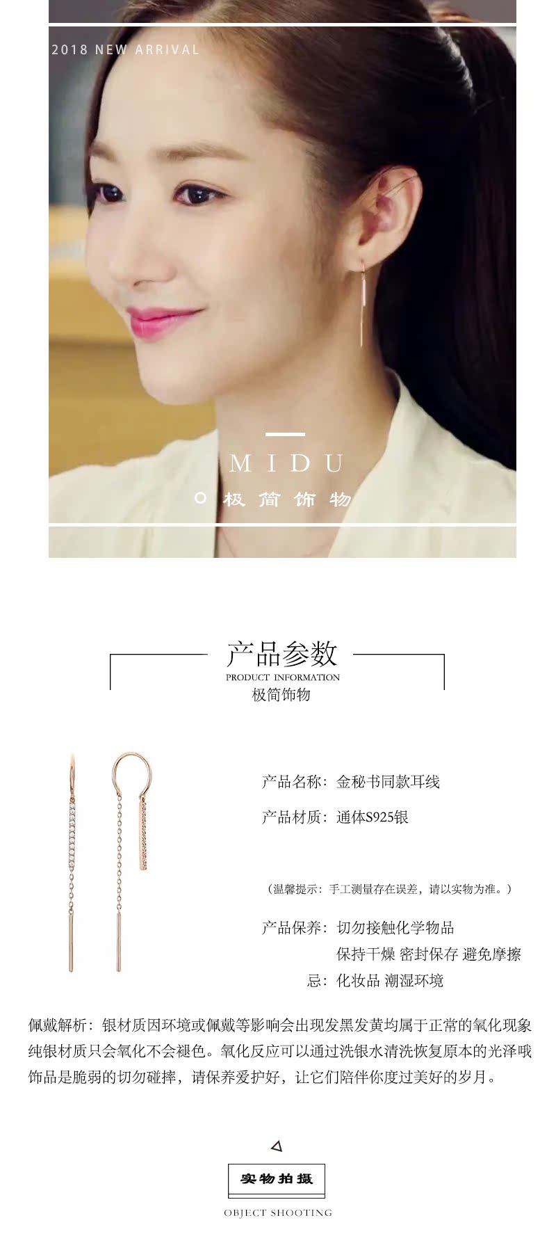 【迷度】通體925純銀金秘書同款耳環 一字流蘇耳線小耳墜 精致1入