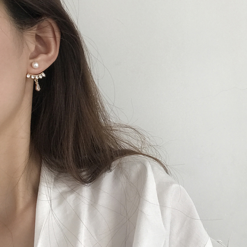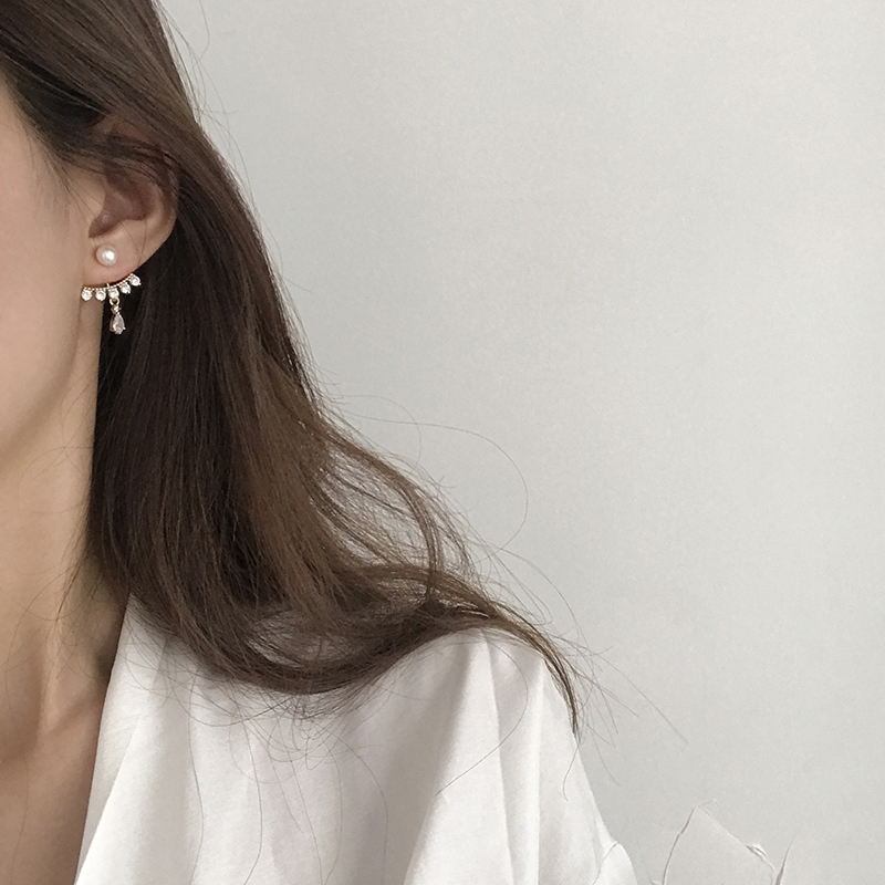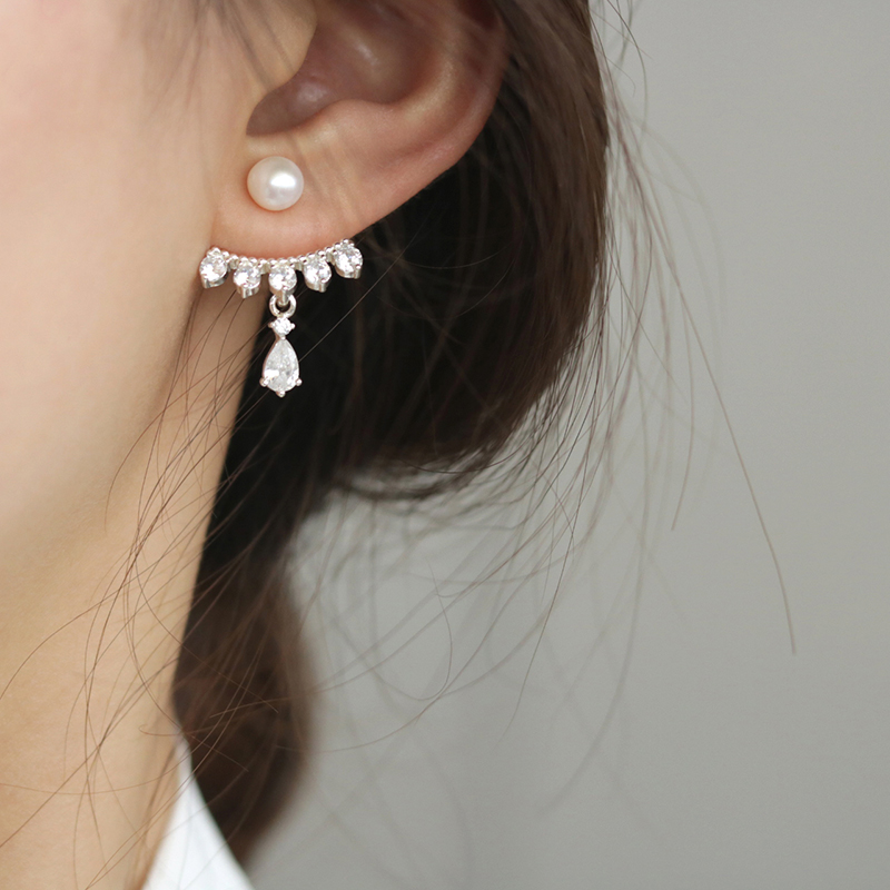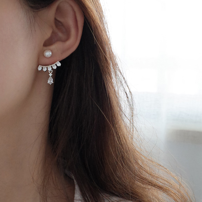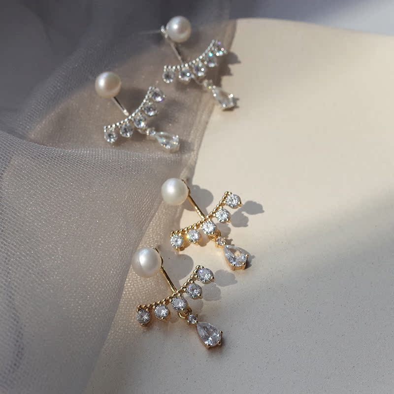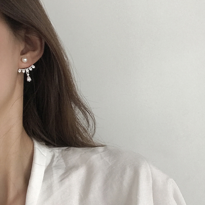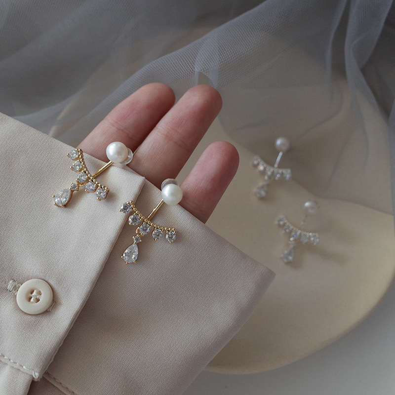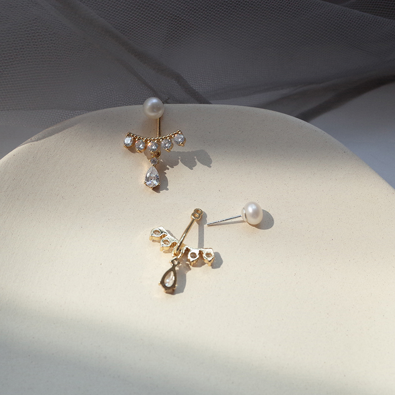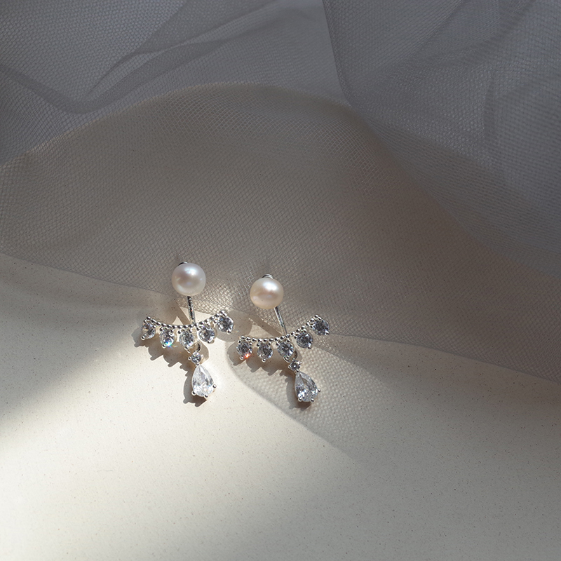 【迷度】S925銀針天然淡水珍珠耳釘韓版鋯鉆水滴耳環氣質 精致1入