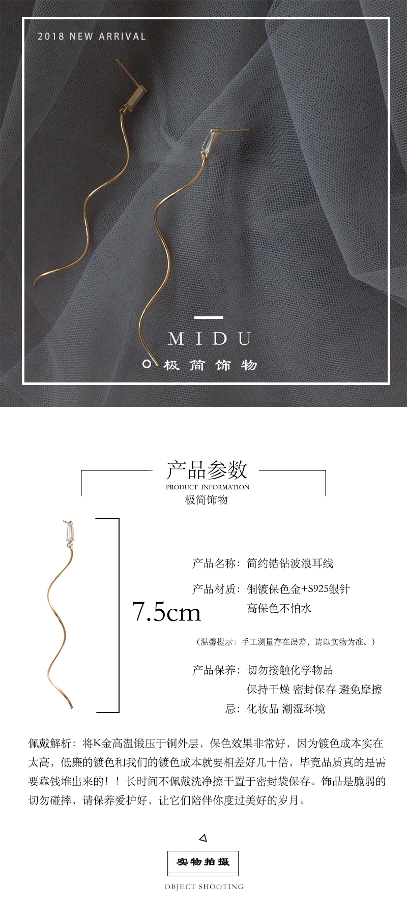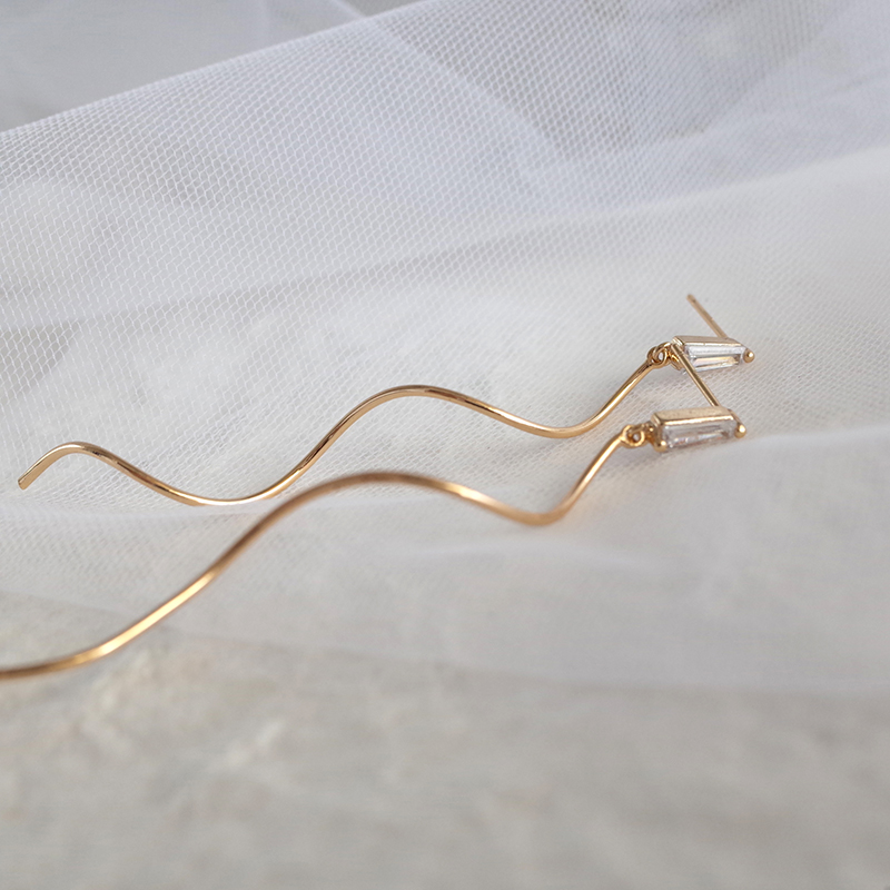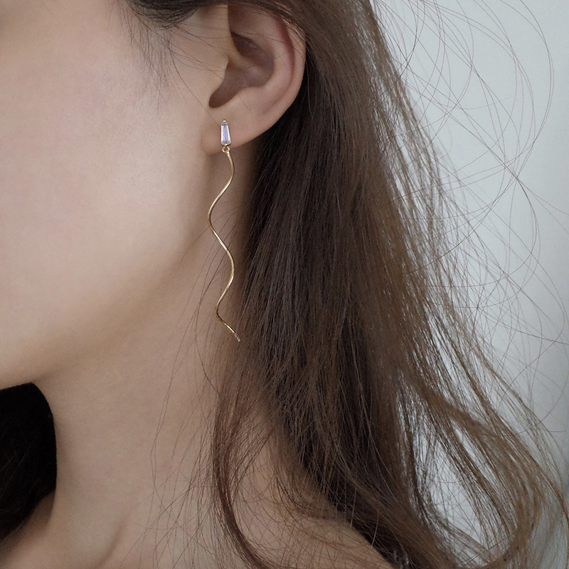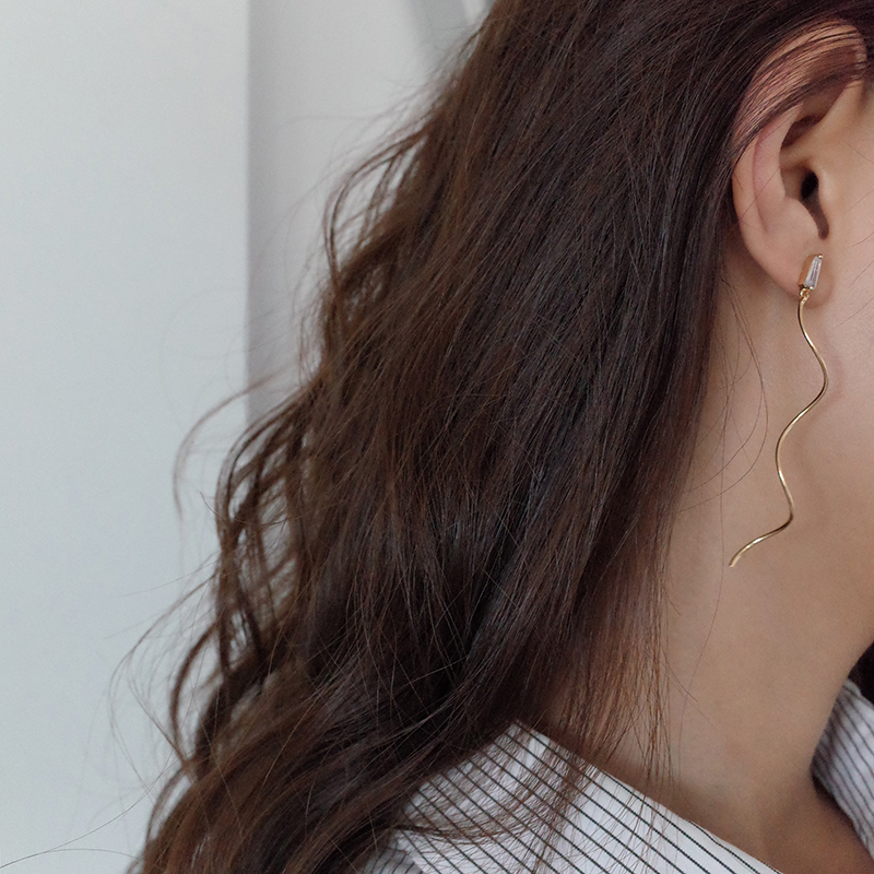 【迷度】S925銀針精致復古水晶耳釘波浪流蘇長款耳線顯臉瘦的耳環1入