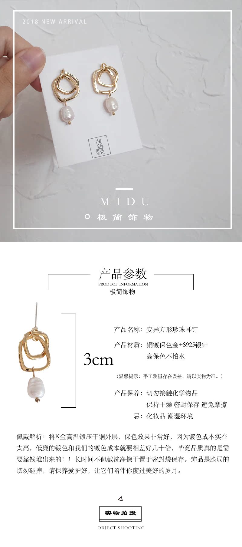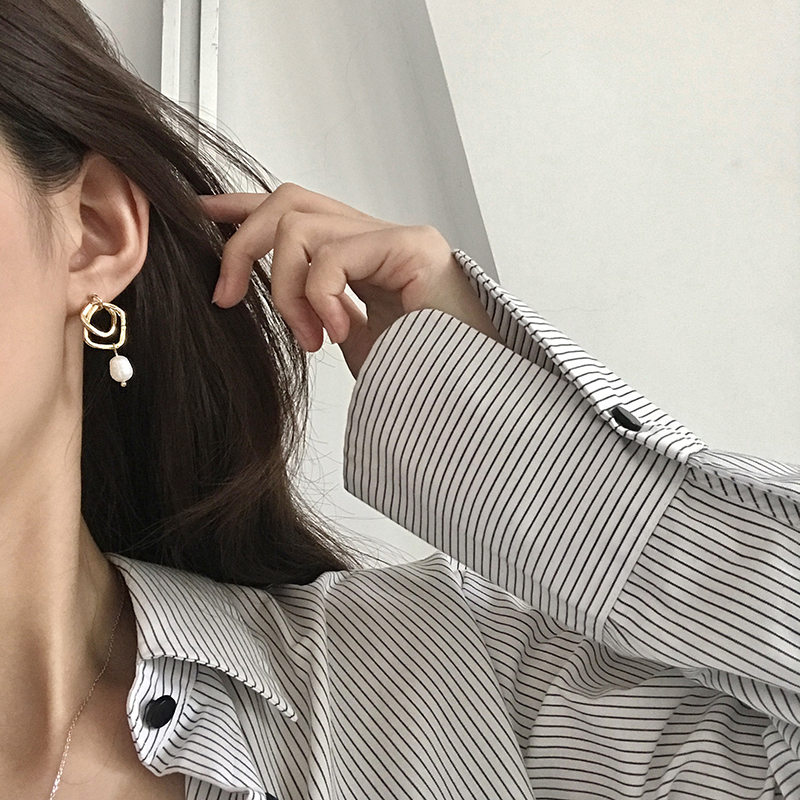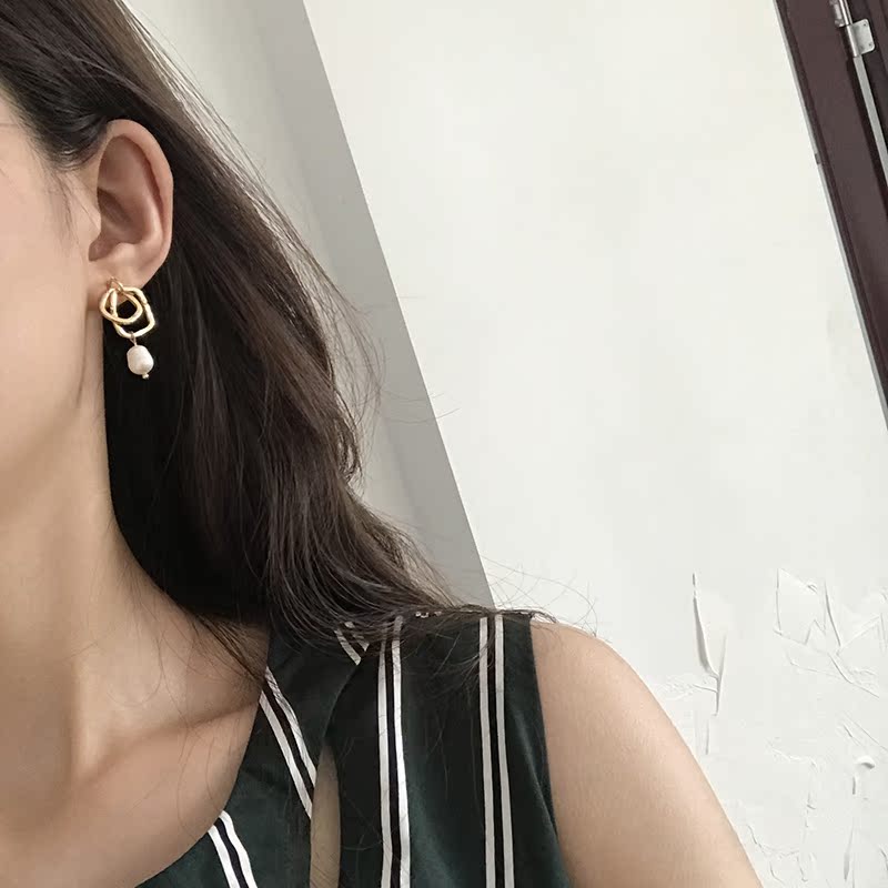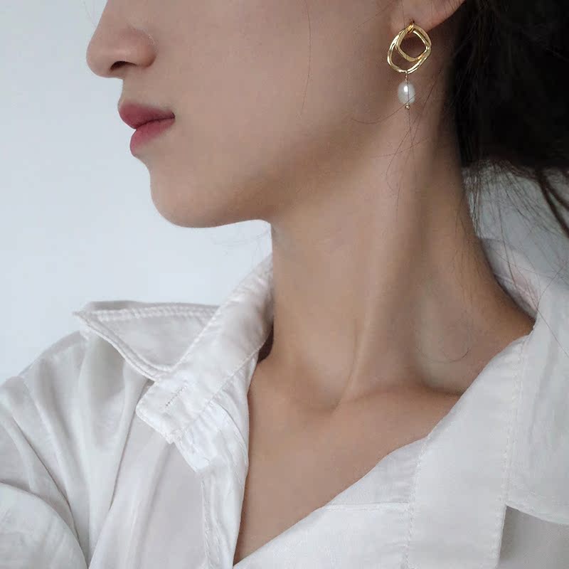 【迷度】S925銀針韓國冷淡風氣質珍珠耳環方形耳釘 女 顯氣質1入