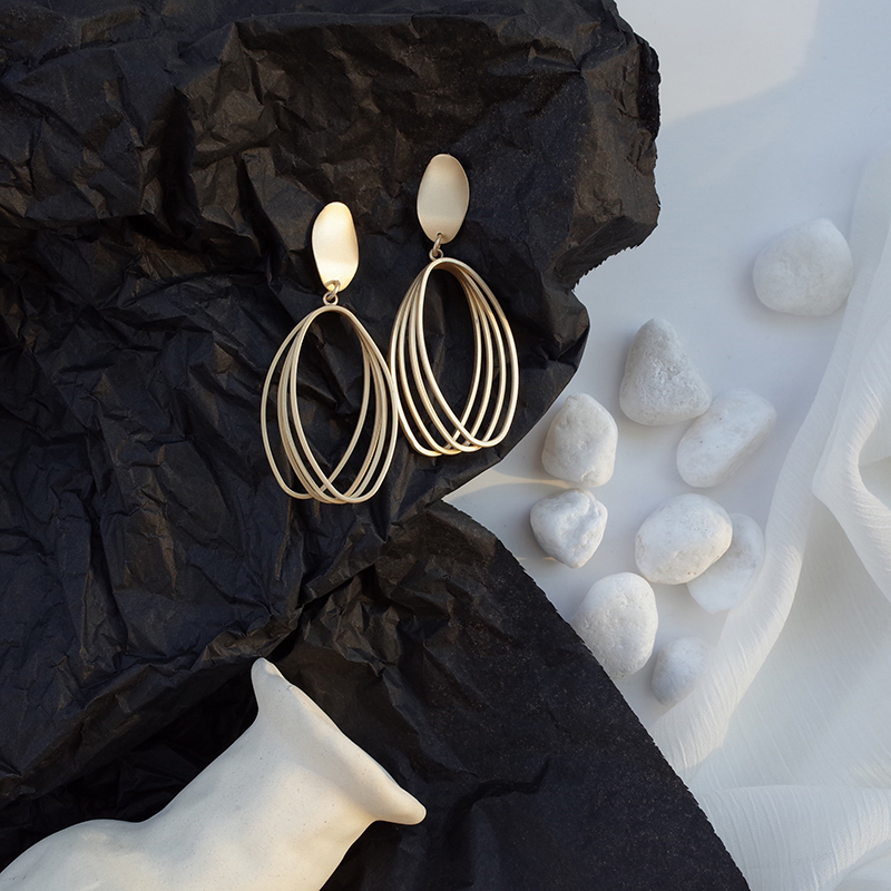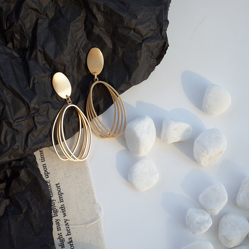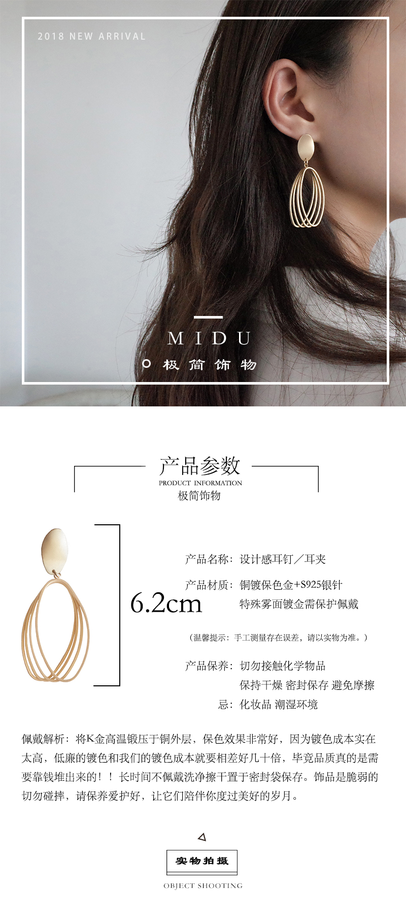 【迷度】S925銀針冷淡風橢圓耳釘長款耳環耳夾顯臉瘦的耳環 大氣1入