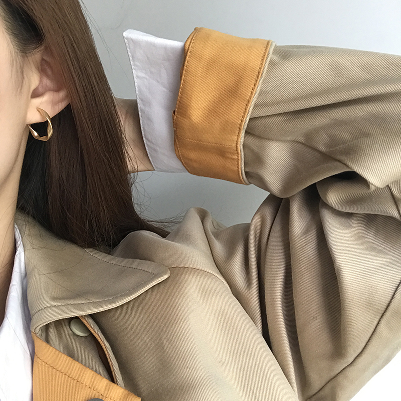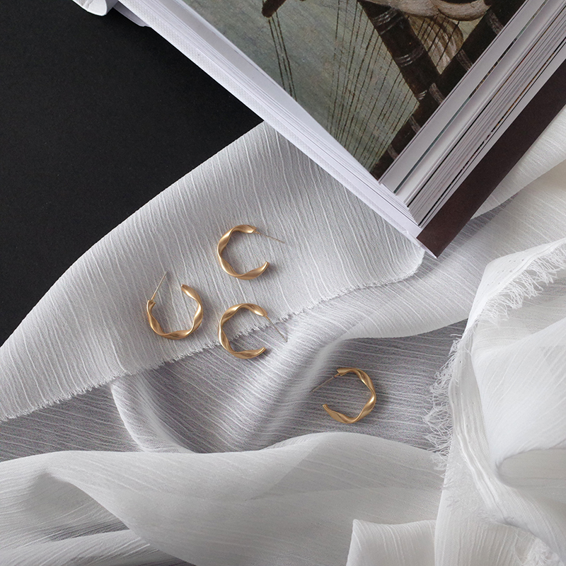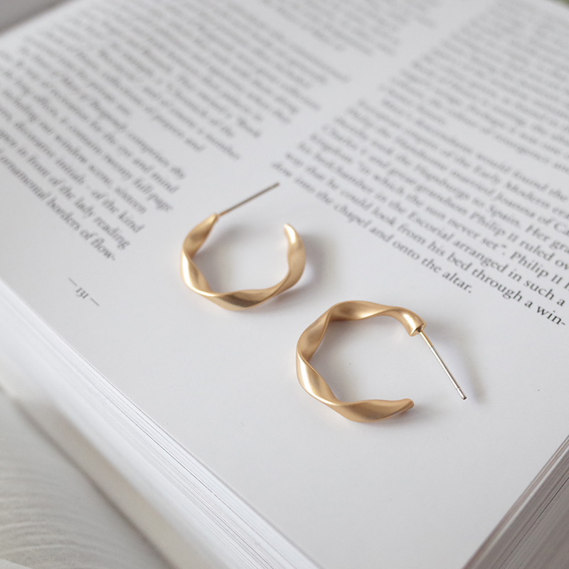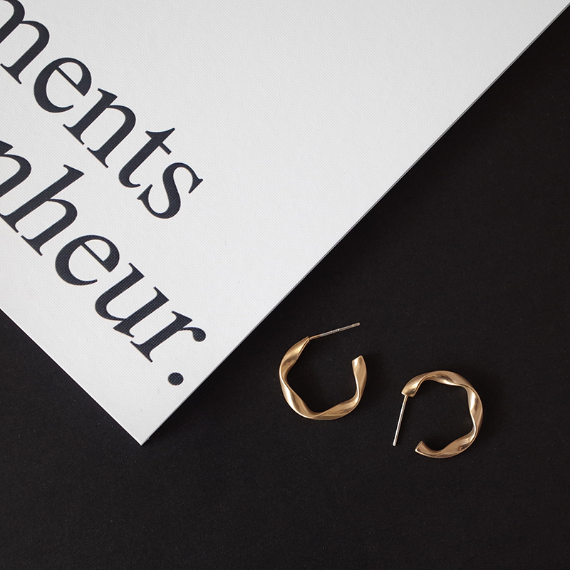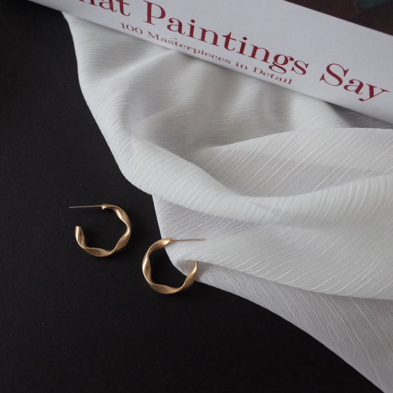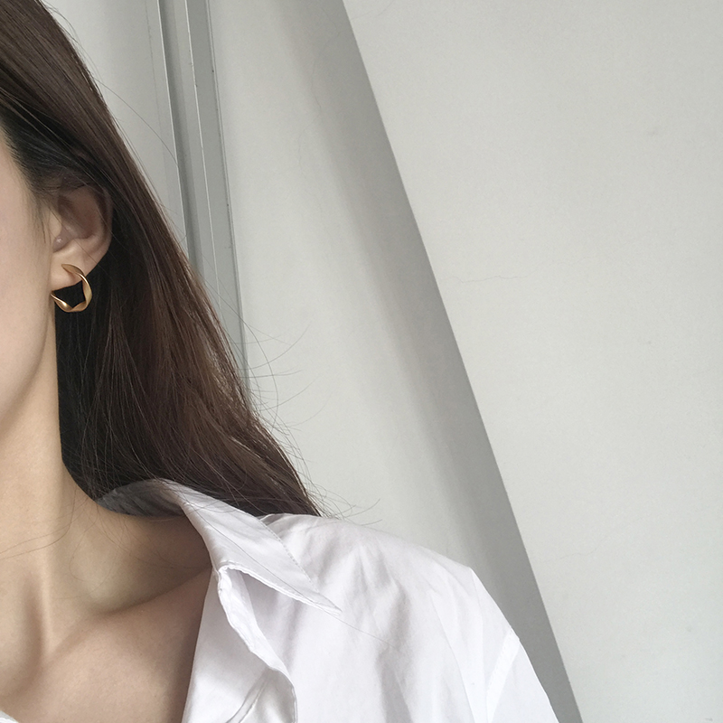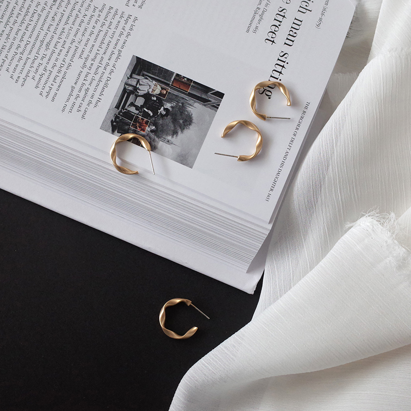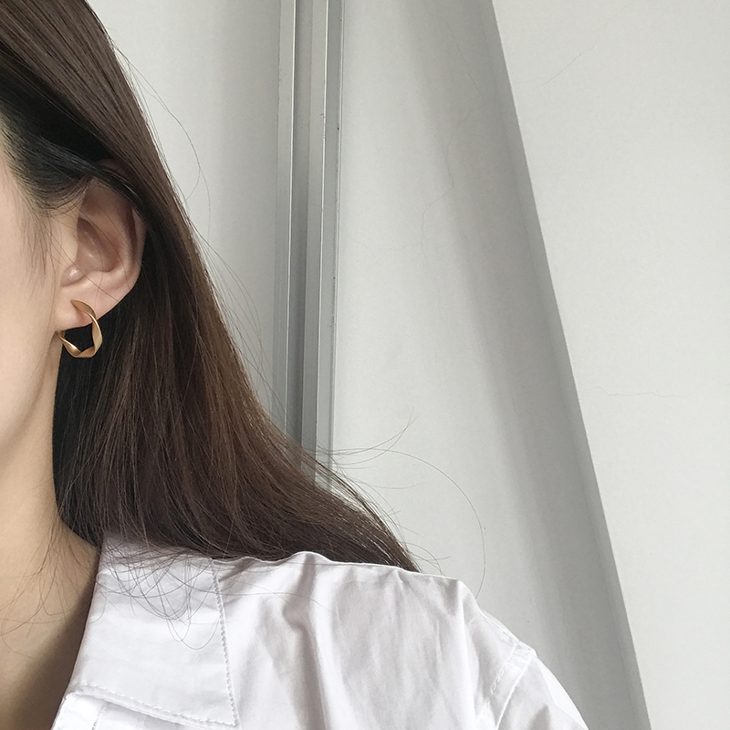 【迷度】霧面金小耳圈S925銀針ins復古港風耳釘冷淡風耳釘 超仙1入