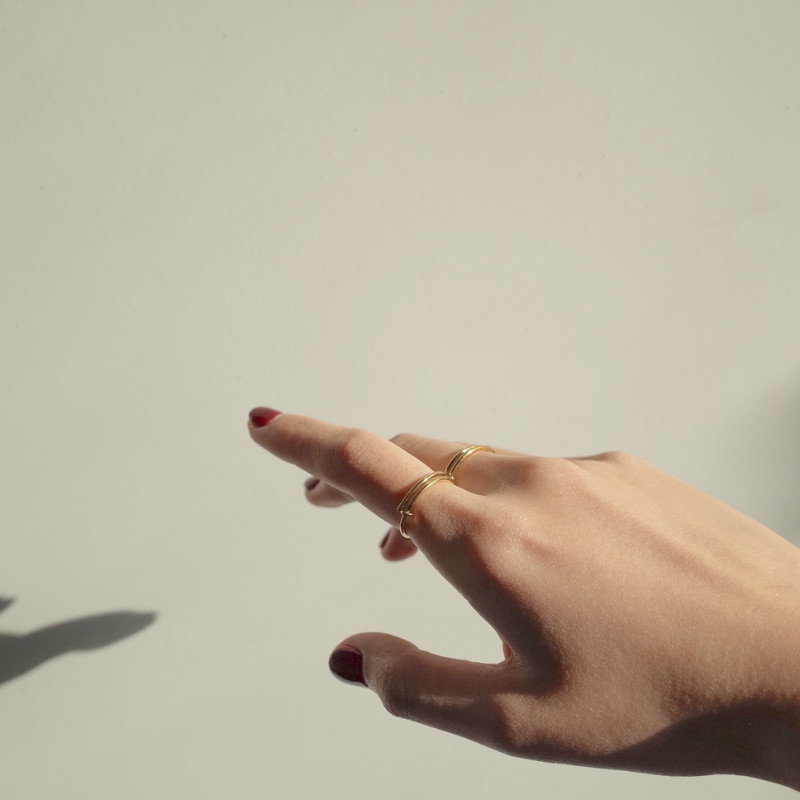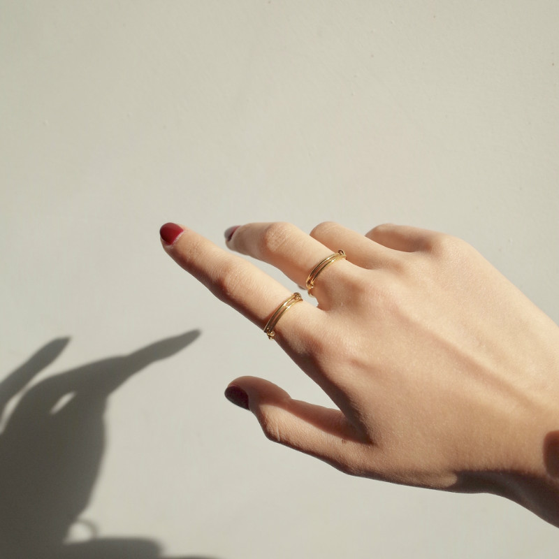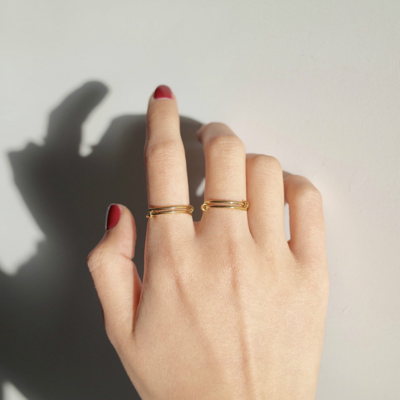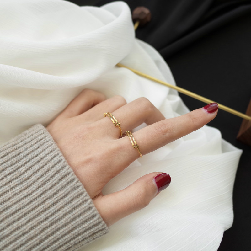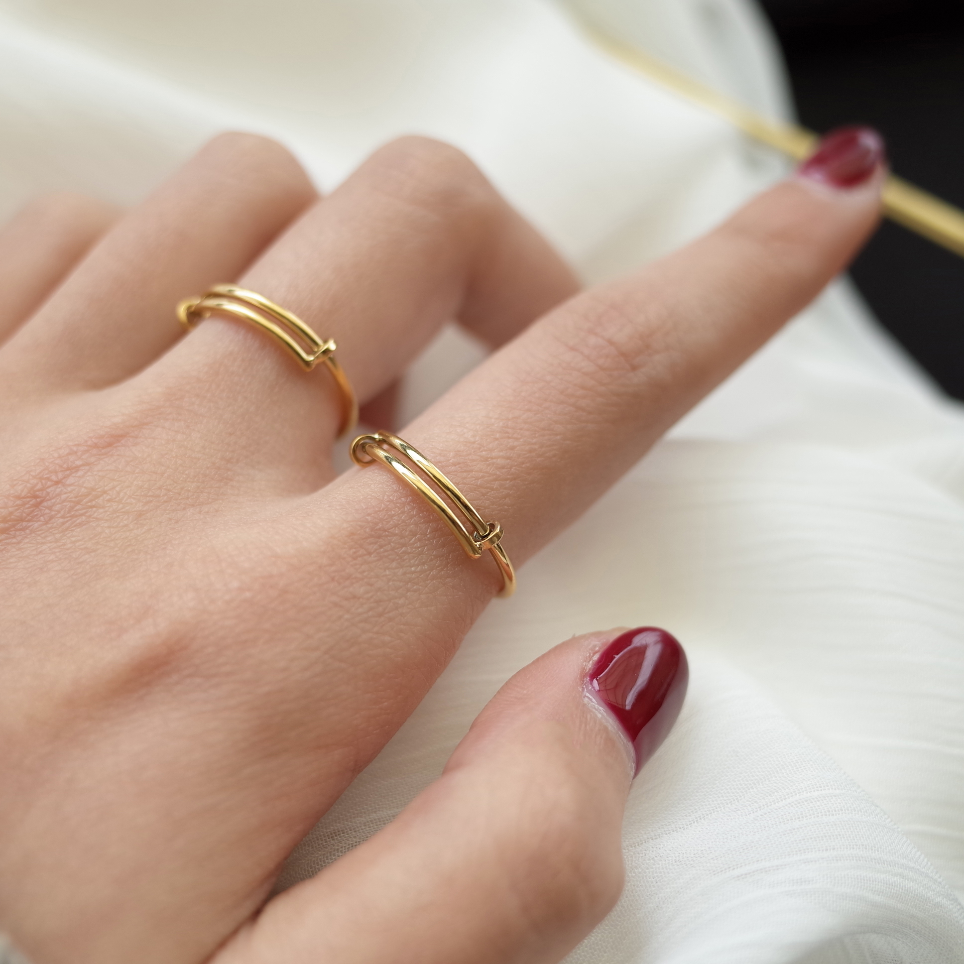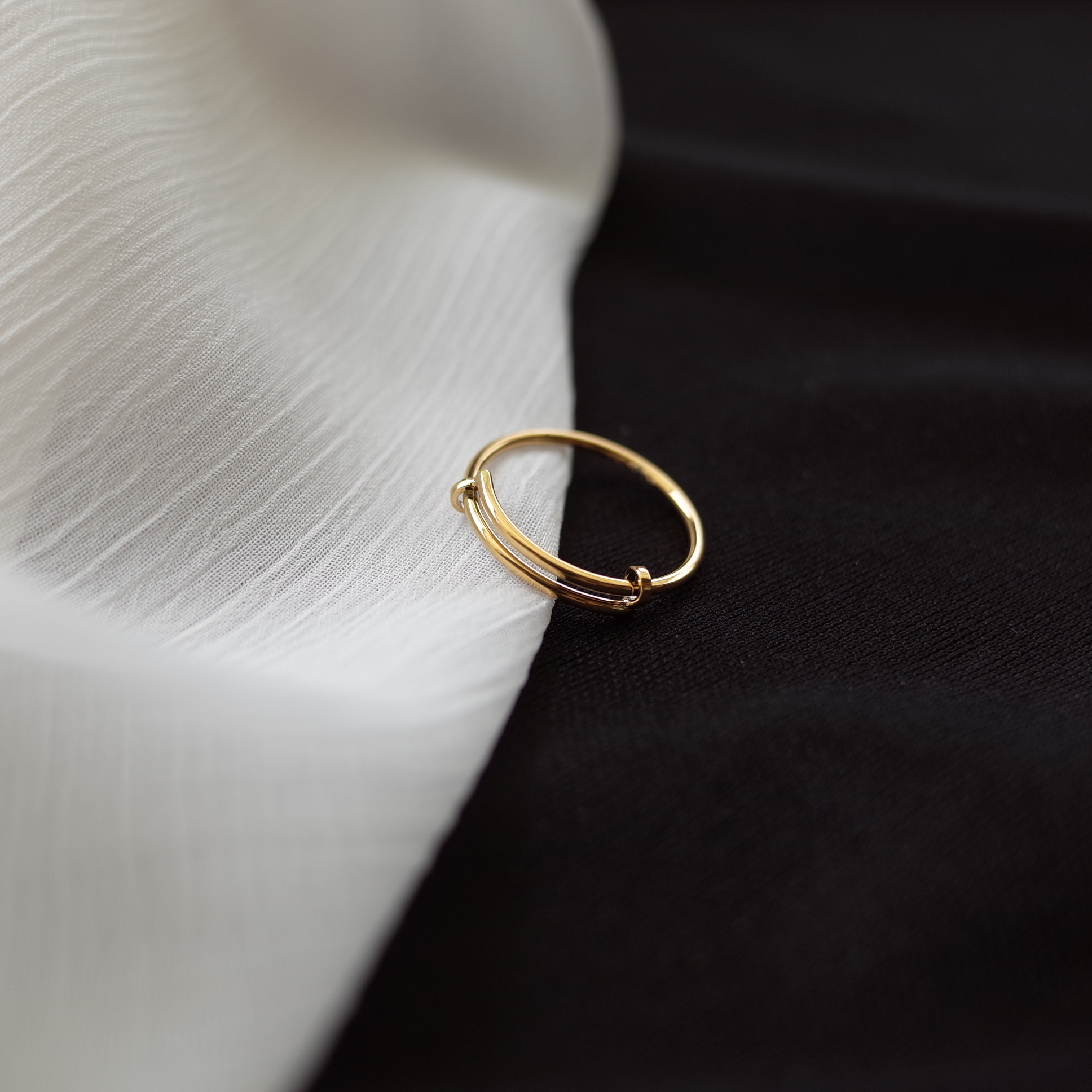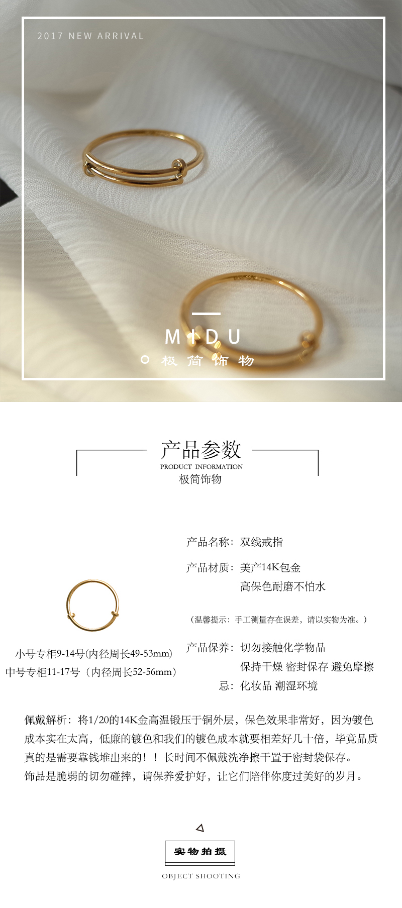 【迷度】美國14k包金 2018春季新款簡約百搭 雙線戒指可調節指環1入