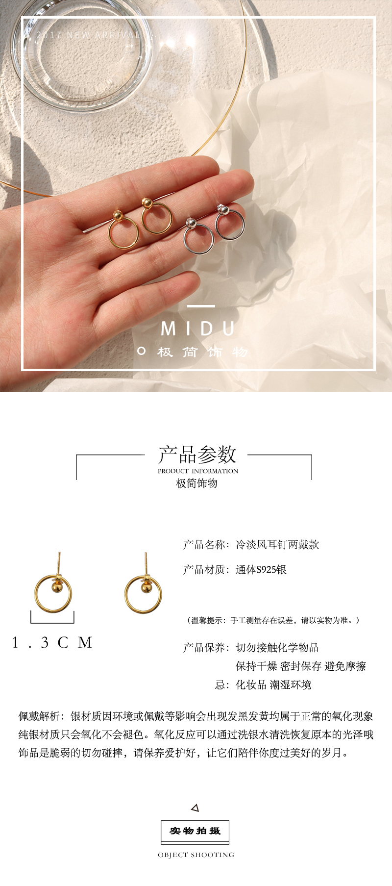 迷度顯臉瘦圓圈耳環超仙 925銀冷淡風耳釘學生百搭簡約大方飾品1入