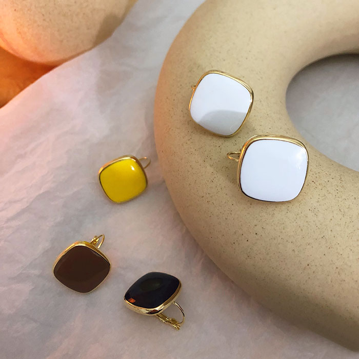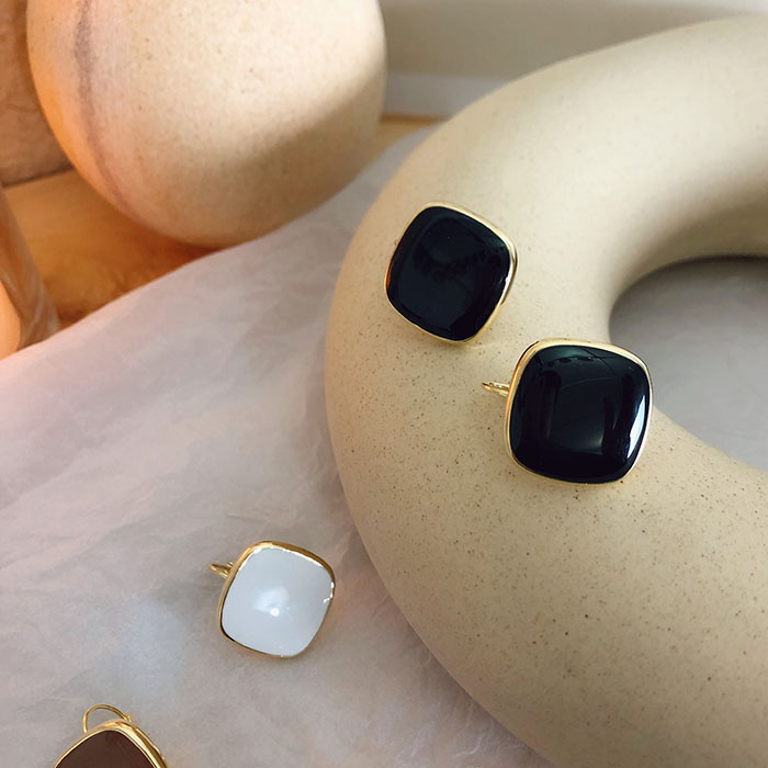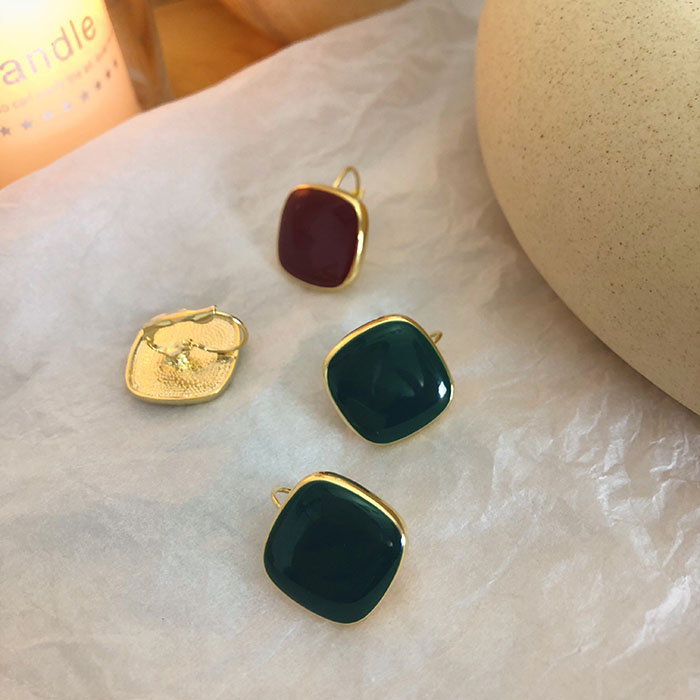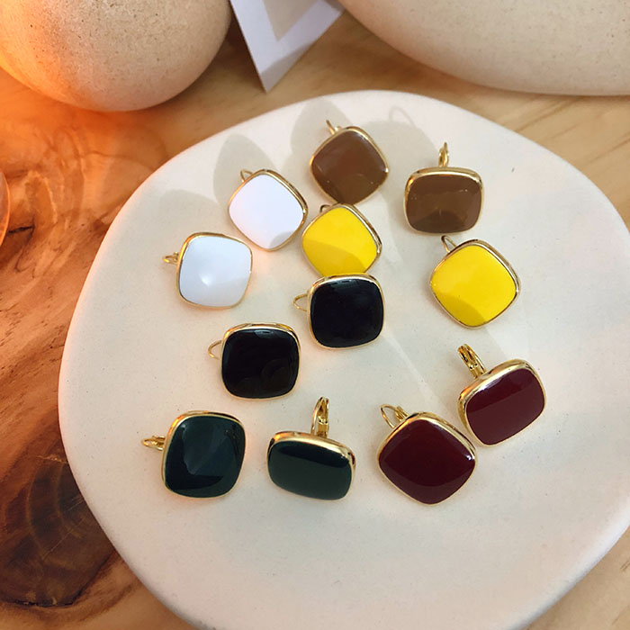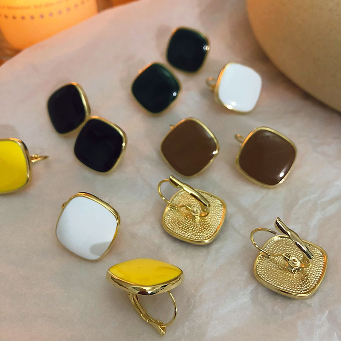 韓國網紅款氣質滴釉耳釘高級感法式復古冷淡風百搭個性簡約耳扣耳1入
