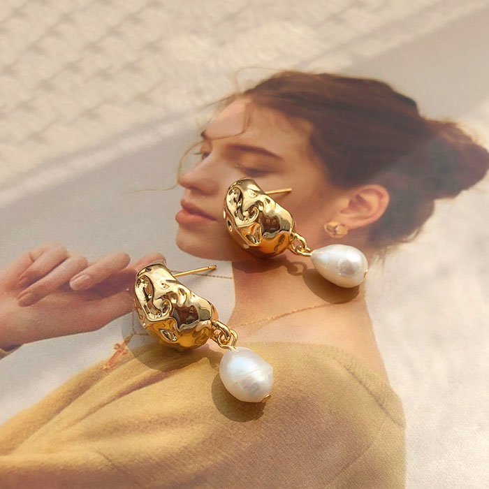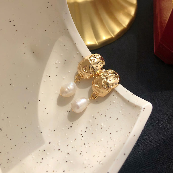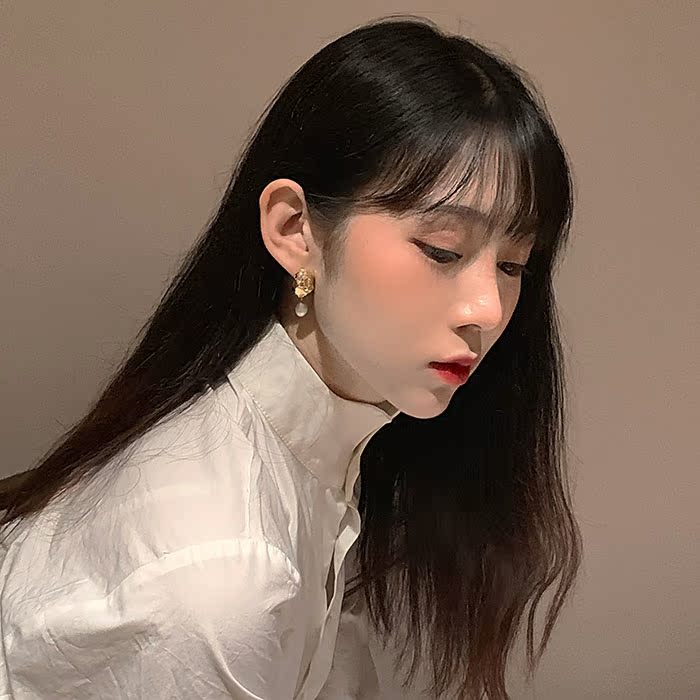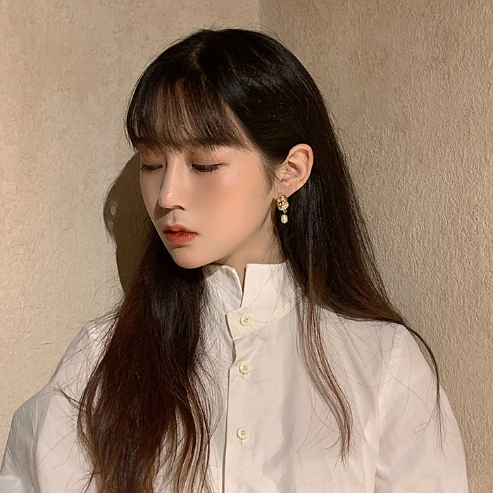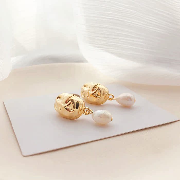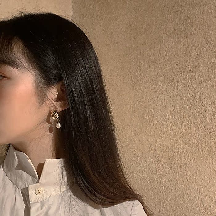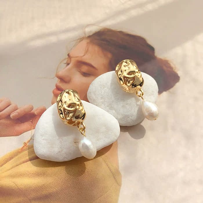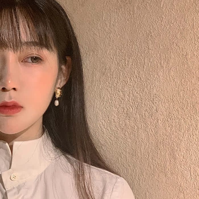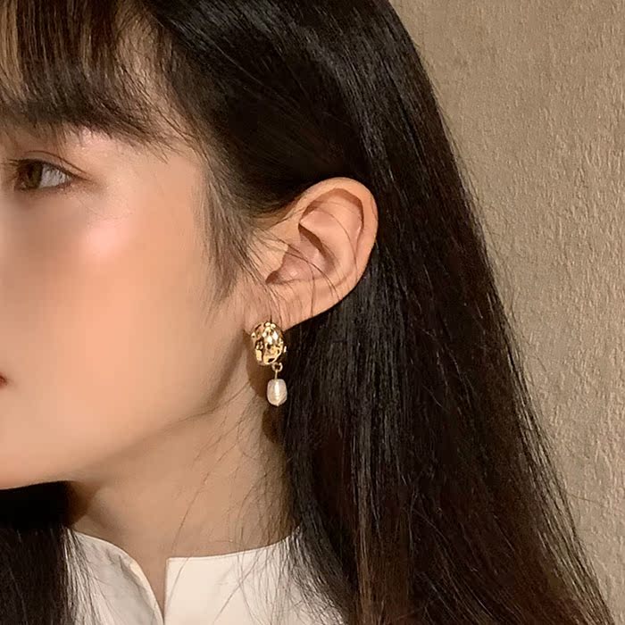 2019新款潮設計感淡水珍珠耳環925銀針簡約大氣百搭復古耳墜1入