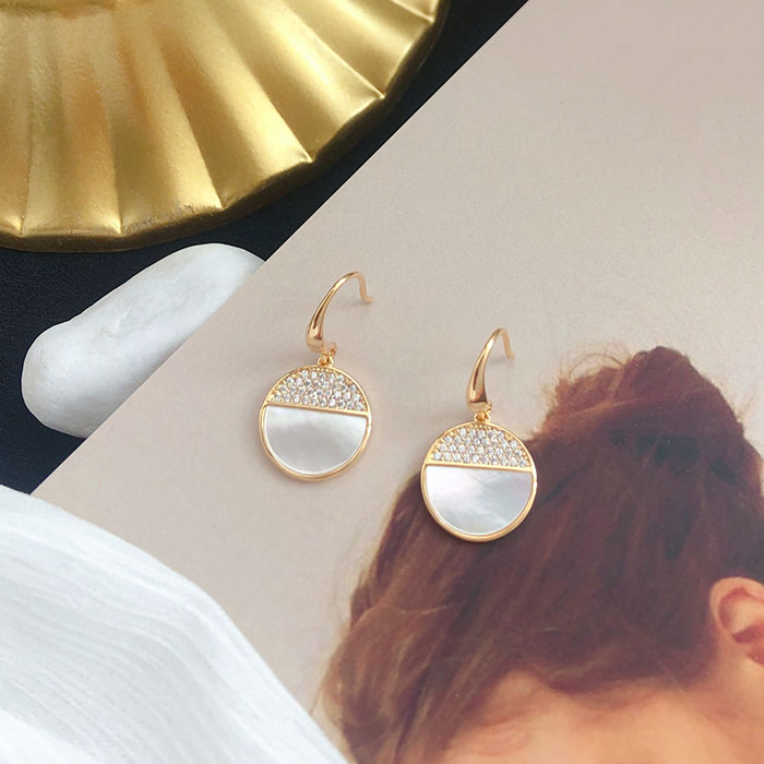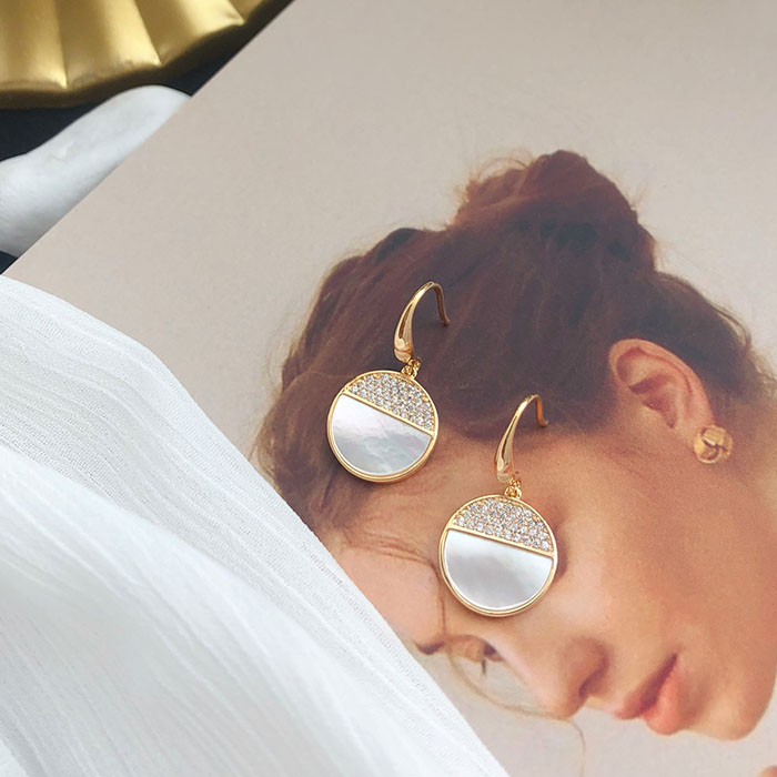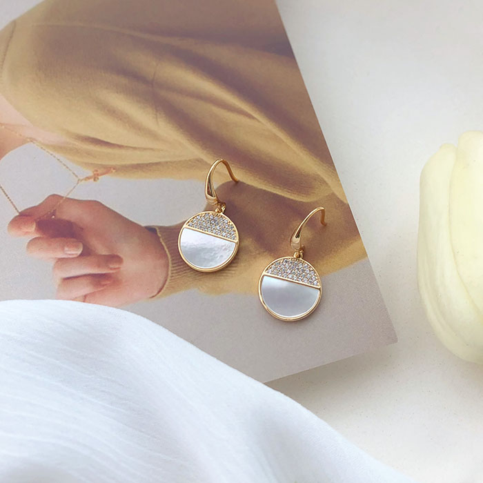 高級感輕奢優雅天然母貝耳釘女小眾設計感精致小巧貝殼小耳環耳飾1入