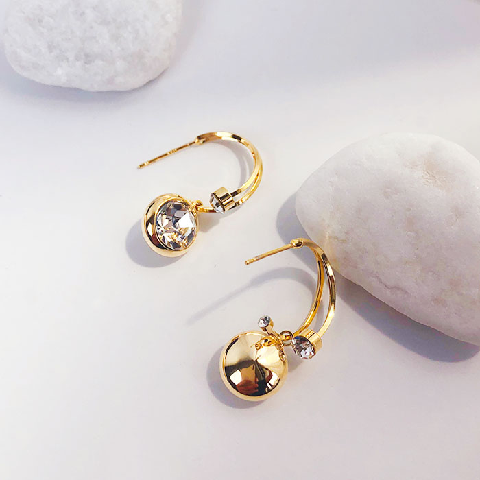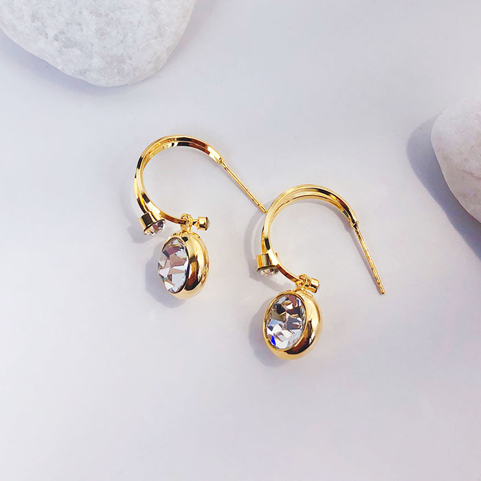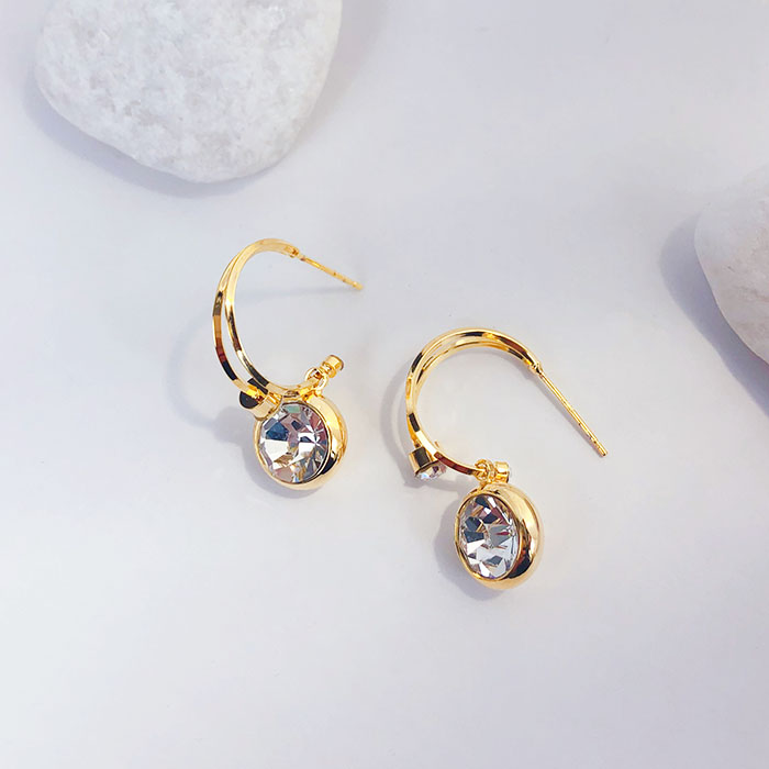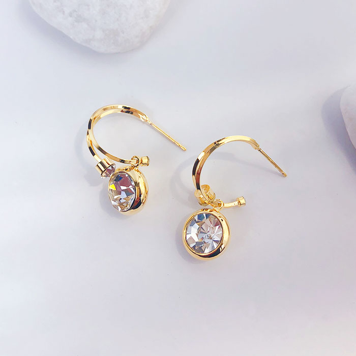 2019新款設計小眾感仿水晶氣質耳圈女925銀網紅個性簡約耳環耳墜1入