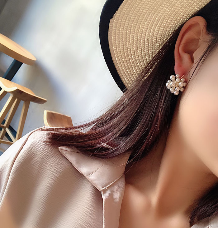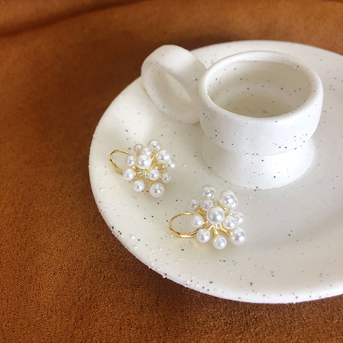 韓國設計師款煙花珍珠耳釘女網紅個性百搭氣質耳環耳扣耳飾品1入