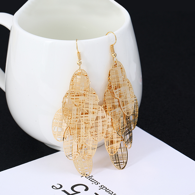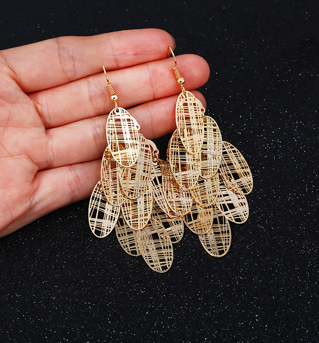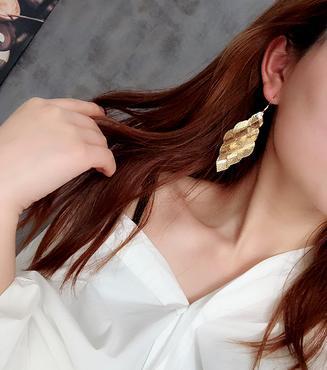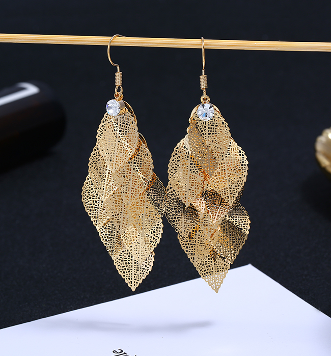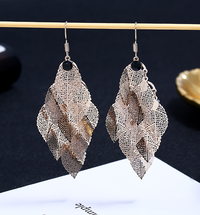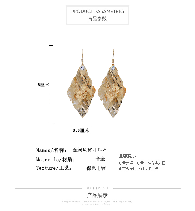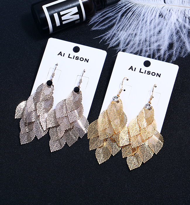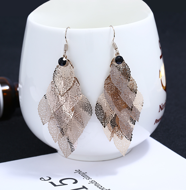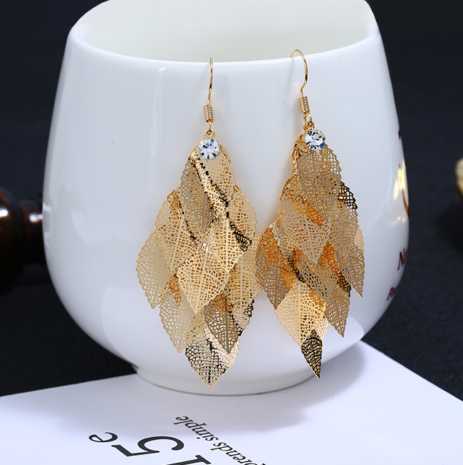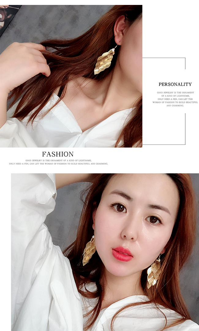 高級感歐美夸張耳環女氣質個性長款流蘇樹葉耳墜復古葉子耳飾品1入