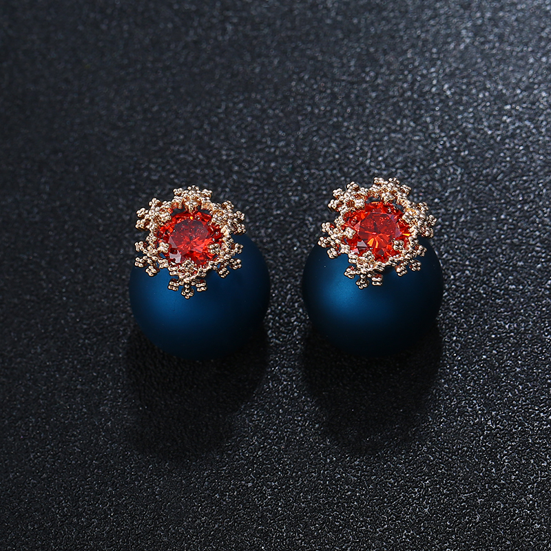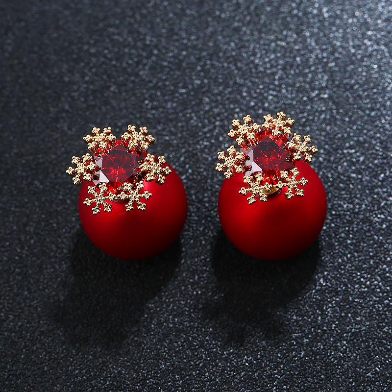 銀針圣誕紅色雪花耳釘女日韓國氣質百搭個性創意磨砂球耳環耳飾品1入
