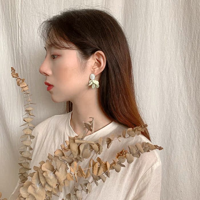 2019新款潮清新亞克力花朵耳環女超仙網紅小眾設計感耳釘耳飾1入