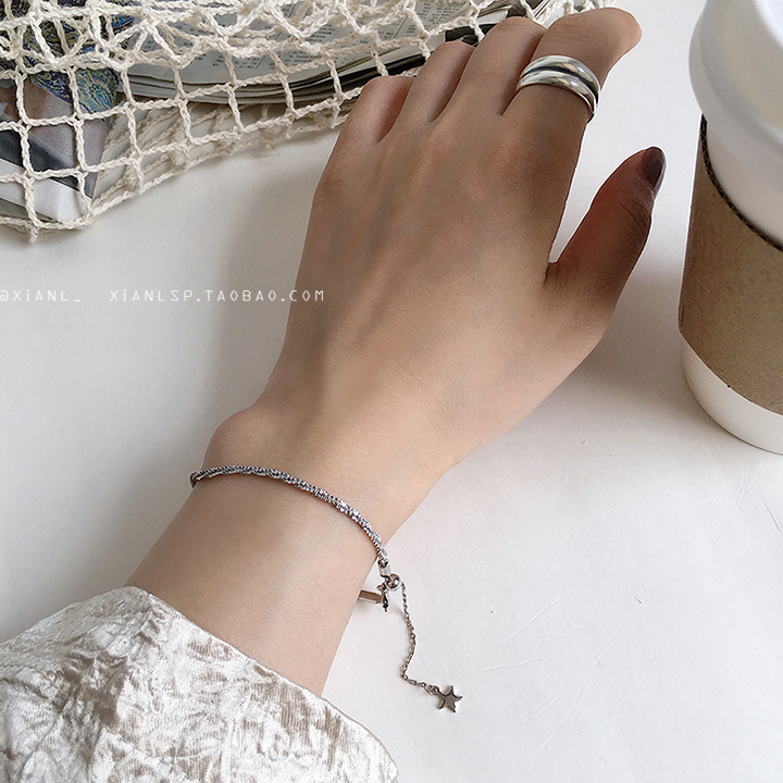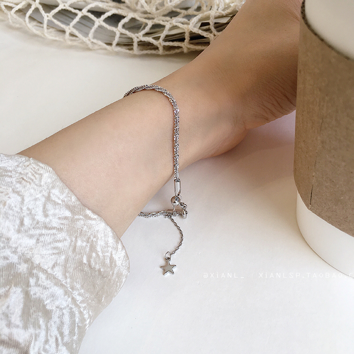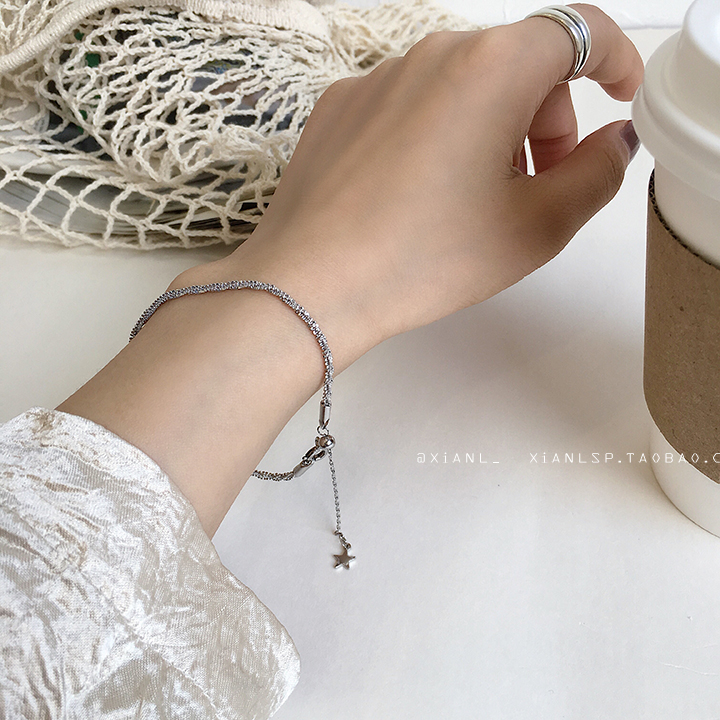 韓版簡約蛇骨流蘇女士手鏈潮五角星吊墜 ins小眾設計冷淡風手飾女1入
