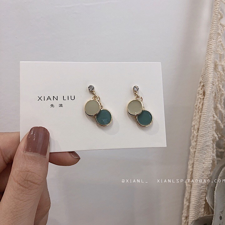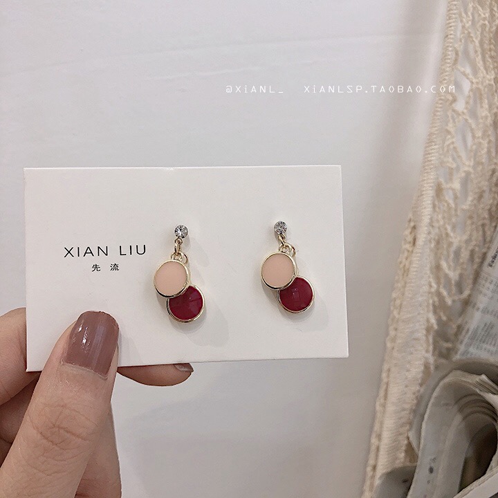 適合夏天的圓形滴釉小巧耳墜精致超仙小鉆冷淡風耳釘時尚潮流耳飾1入
