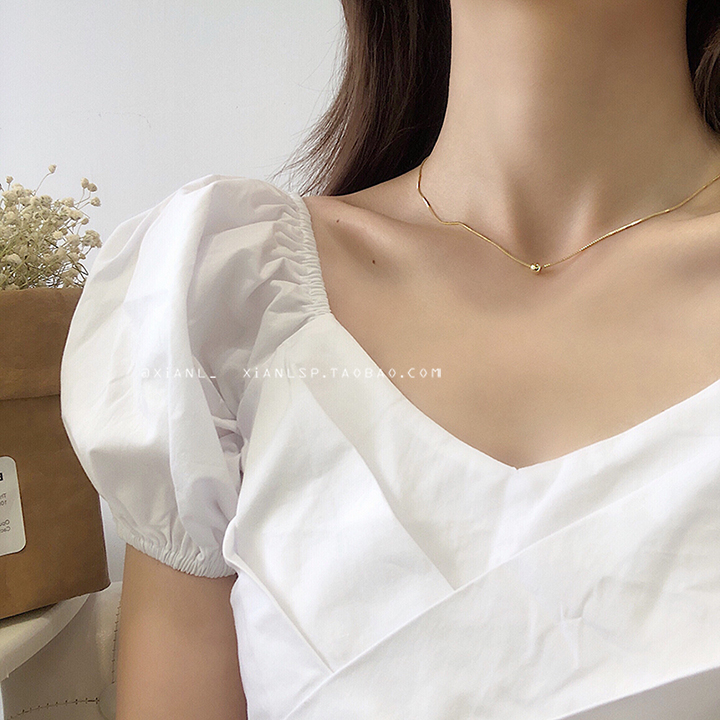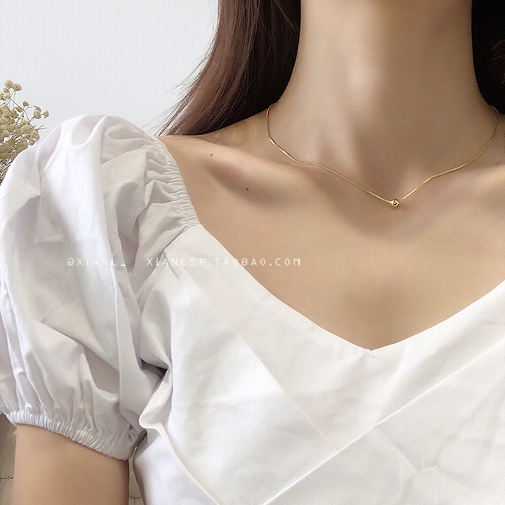 高級感項鏈法式金豆圓珠ins簡約鎖骨鏈氣質小眾短款吊墜脖子飾品1入