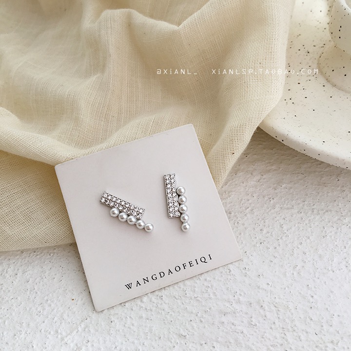 設計感耳釘小眾鑲鋯閃鉆排式小珍珠精致耳環性冷淡風東大門耳飾女1入