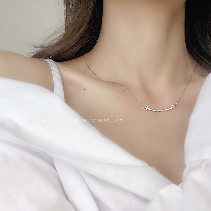 韓版簡約個性一字笑臉項鏈女氣質微笑學生頸鏈潮網紅同款鎖骨鏈1入