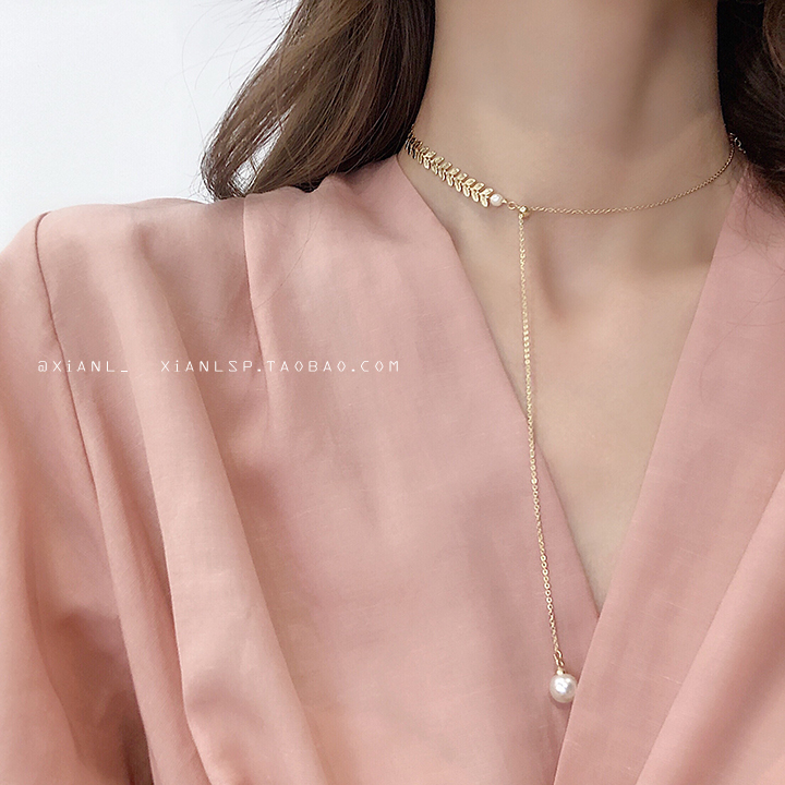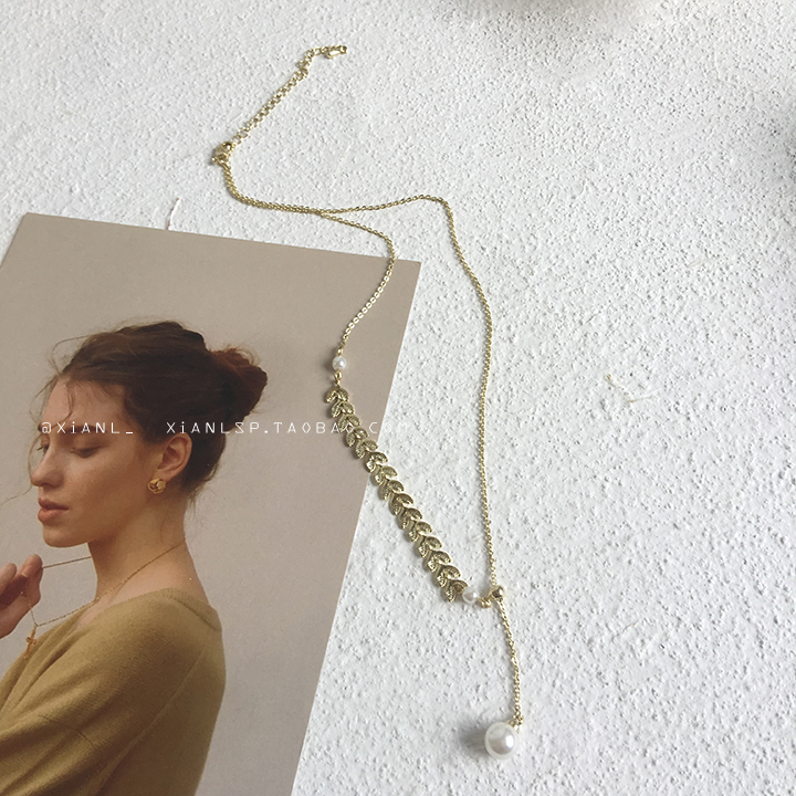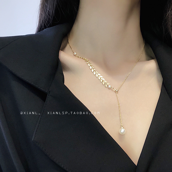 麥穗珍珠吊墜項鏈女潮網紅鎖骨鏈ins簡約氣質小眾設計冷淡風新款1入
