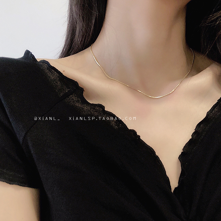 高級感項鏈小眾無吊墜蛇骨鏈細脖頸鏈裸鏈配飾潮網紅項圈鎖骨鏈女1入