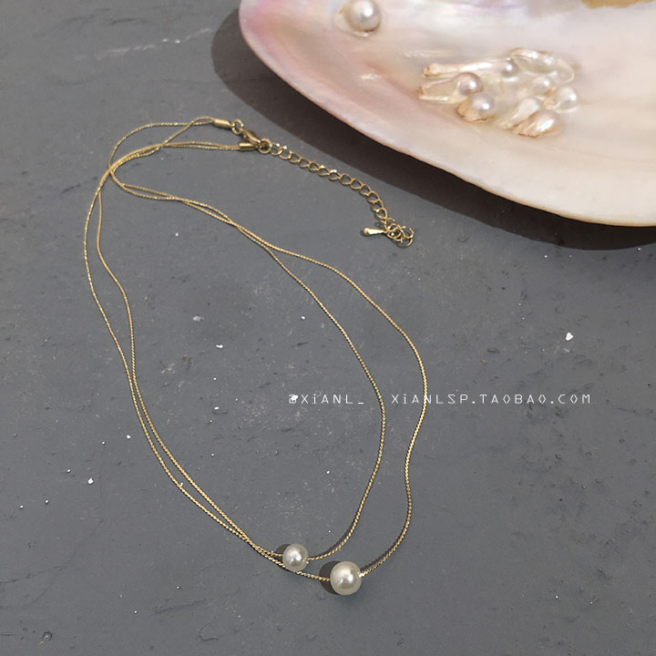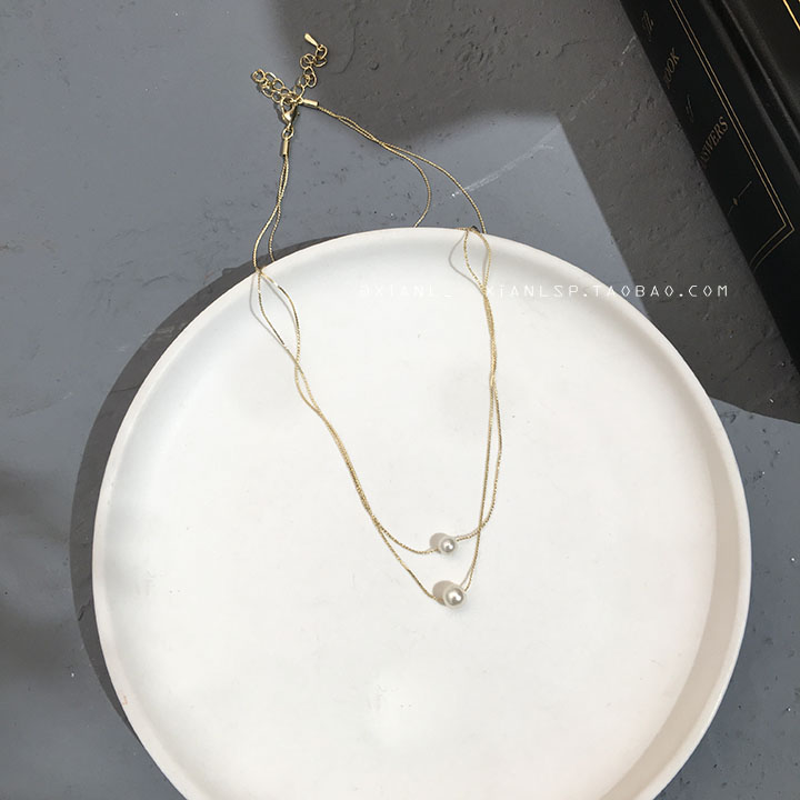 設計感項鏈女韓版簡約個性網紅珍珠鎖骨鏈小眾氣質潮精致脖頸吊墜1入