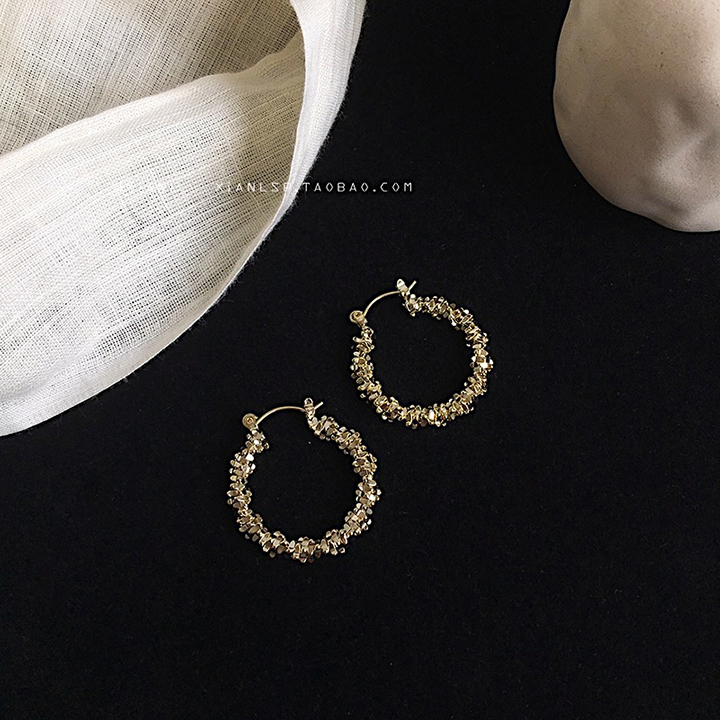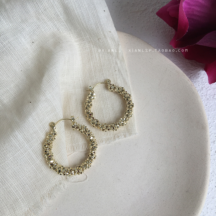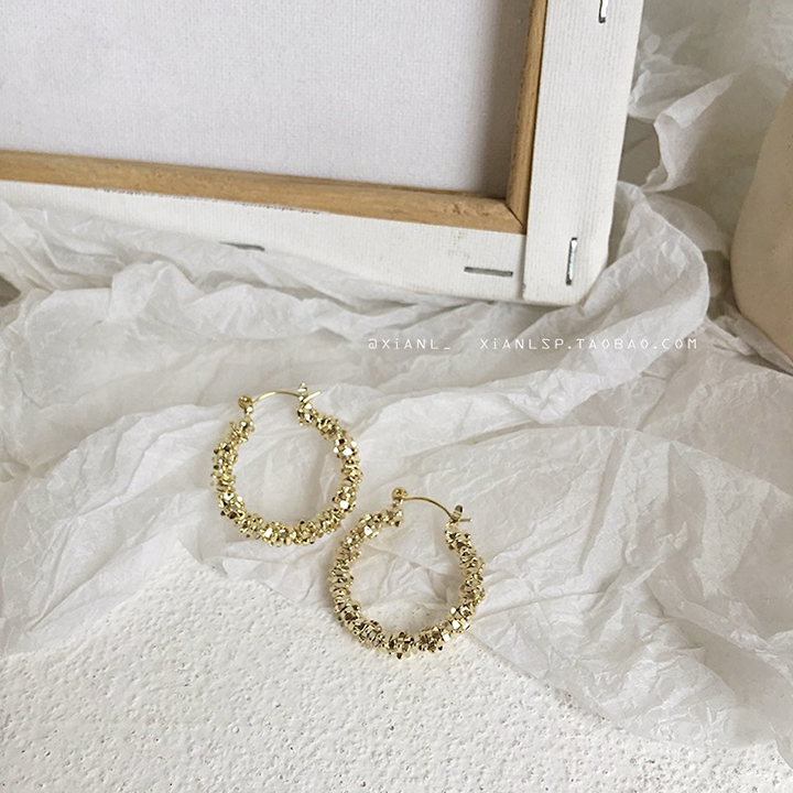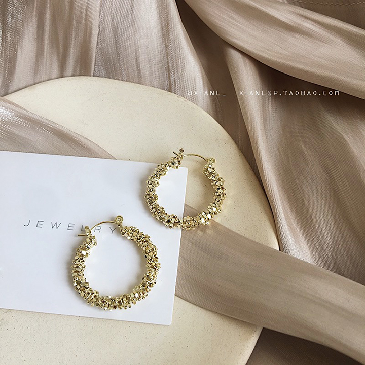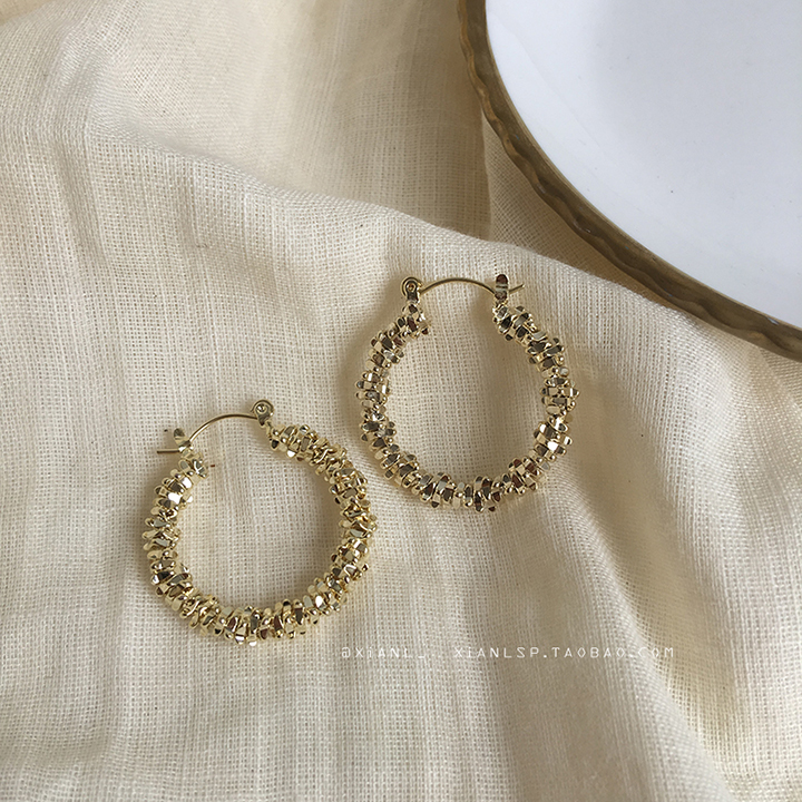 金屬超閃圓圈耳飾韓國氣質個性冷淡風耳圈百搭女生高級感耳環耳扣1入