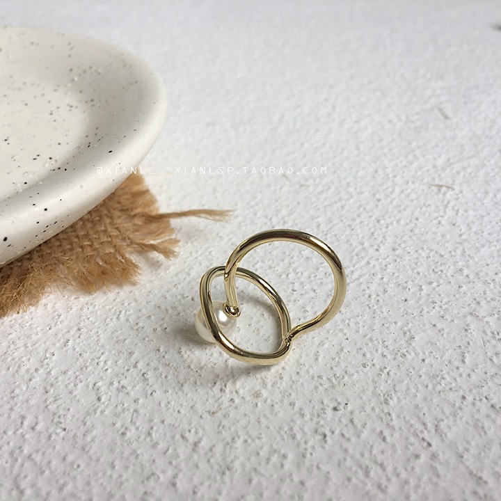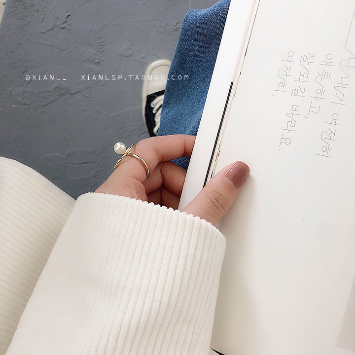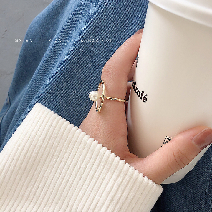韓國ins小眾設計時尚個性日式輕奢戒指網紅少女可調節珍珠食指環1入