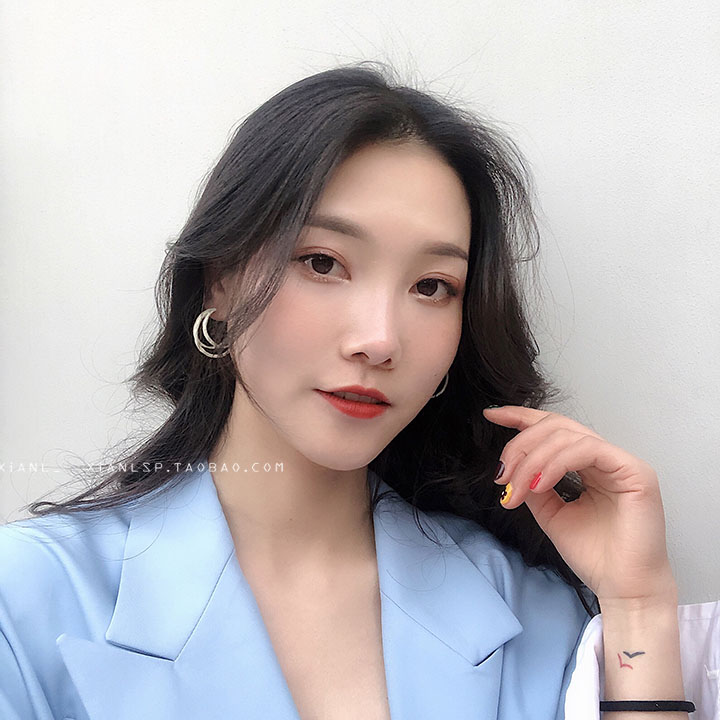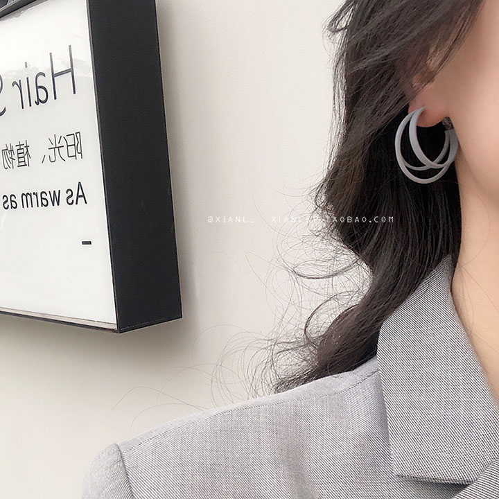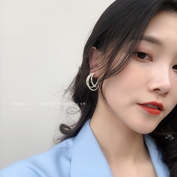 設計感耳環小眾氣質韓國百搭2019新款潮耳圈女復古港風圓圈圈耳飾1入