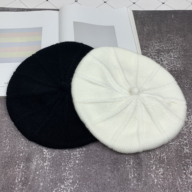 貝雷帽女秋冬日系文藝百搭毛線針織帽韓版潮時尚街頭凹造型南瓜帽1入
